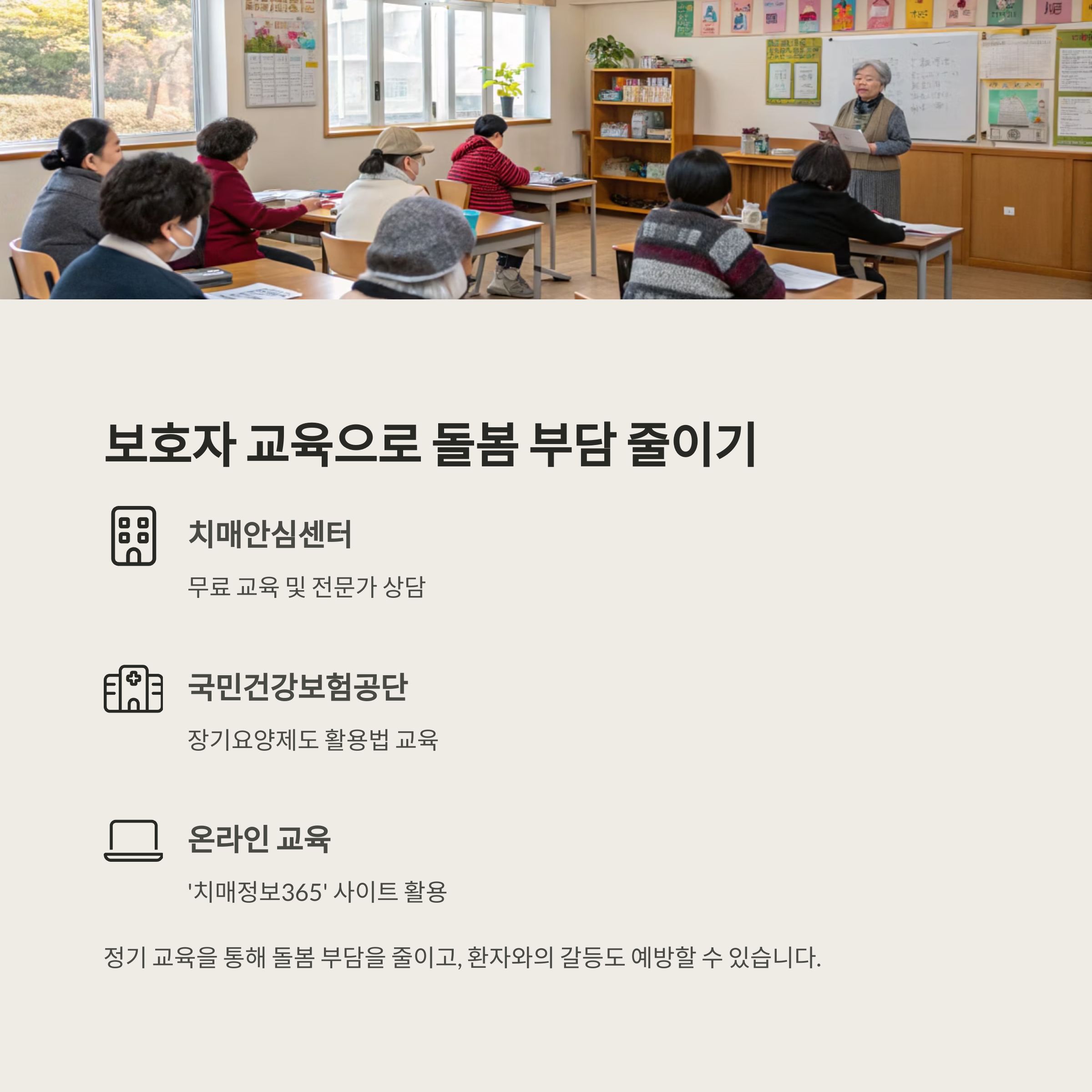 정기 교육을 통해 돌봄 부담을 줄이고, 환자와의 갈등도 예방할 수 있습니다.