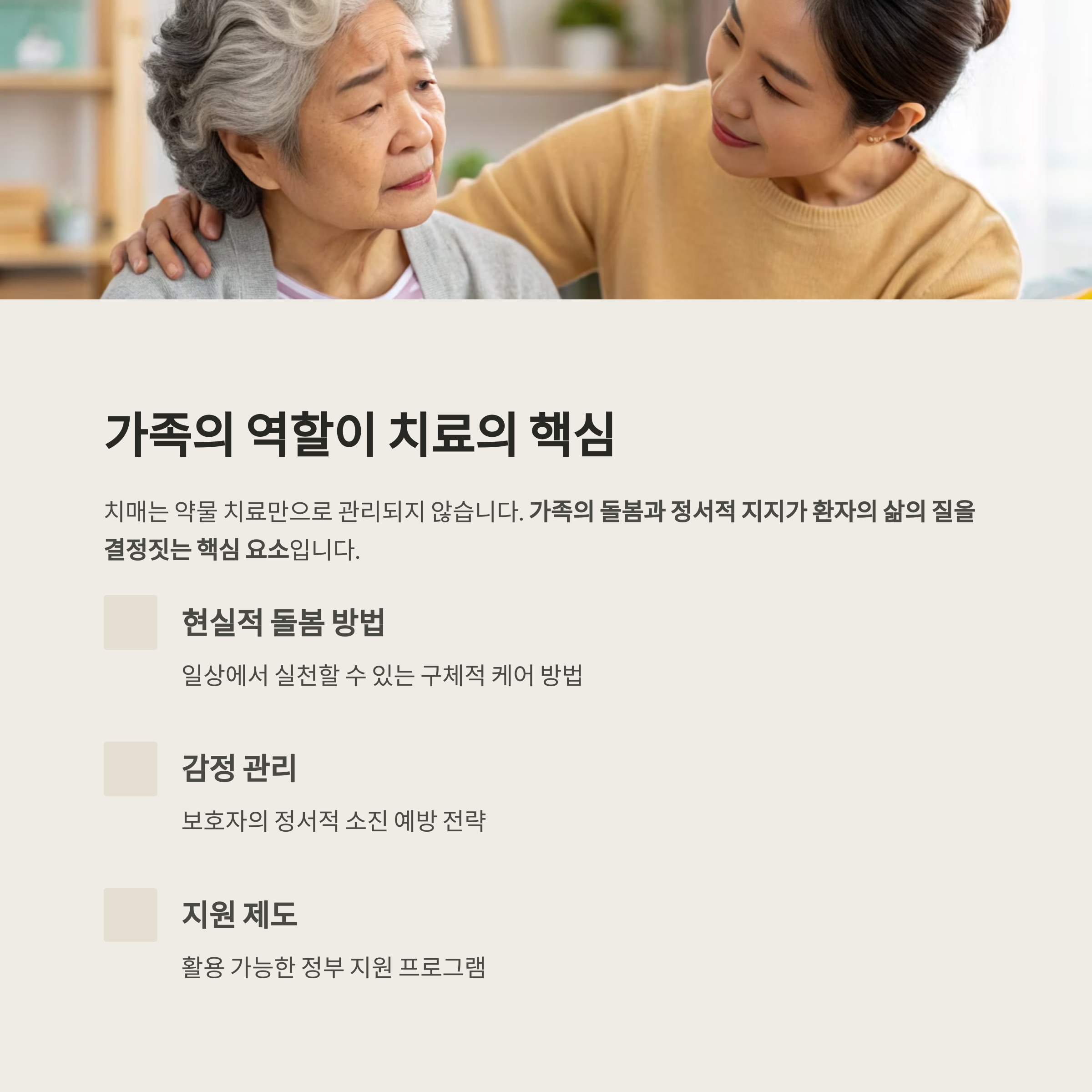 가장 많은 시간을 함께하는 가족의 돌봄과 정서적 지지가 환자의 삶의 질을 결정짓는 핵심 요소입니다.