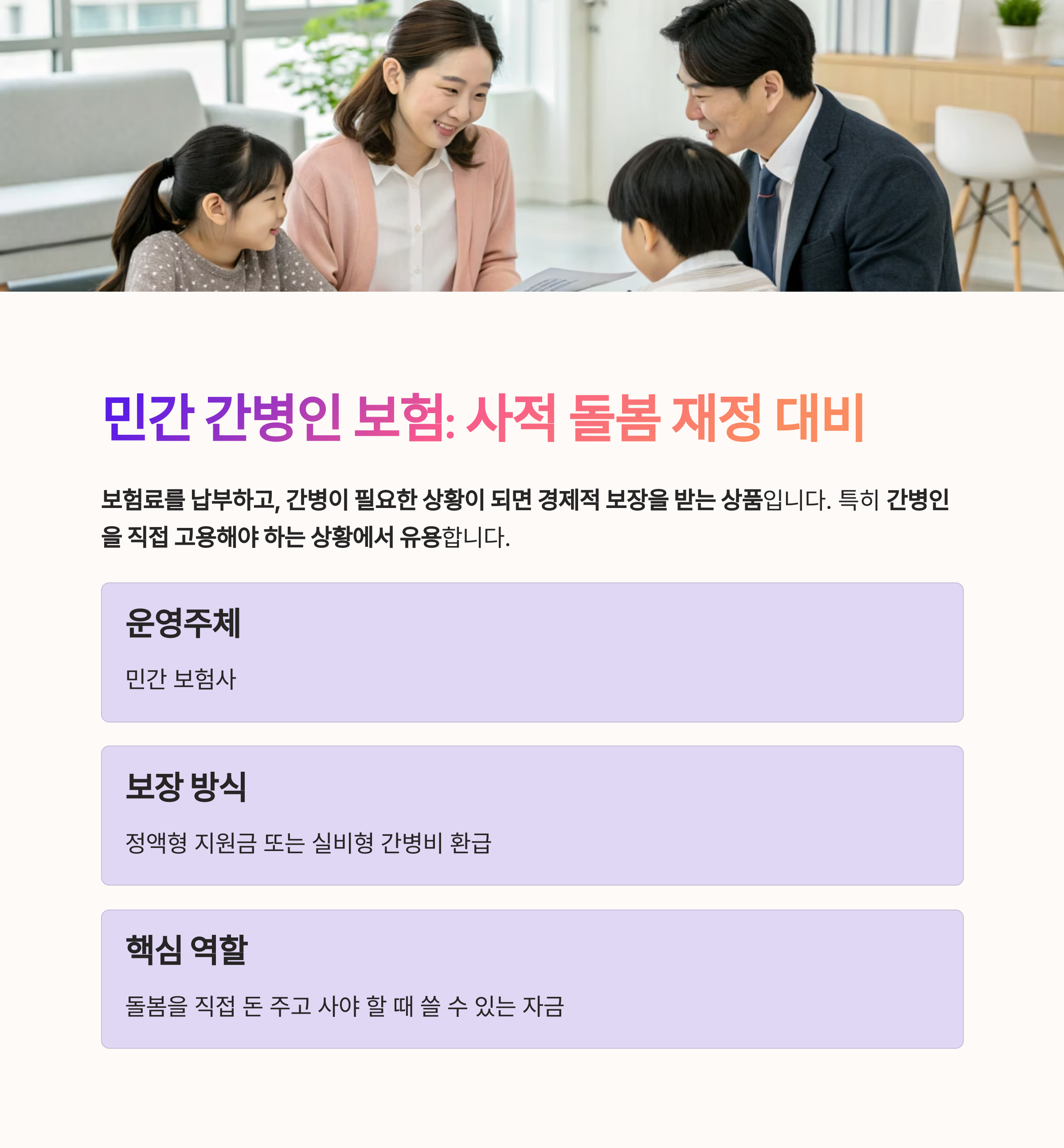 민간 간병인 보험: 사적 돌봄 재정을 대비하는 상품