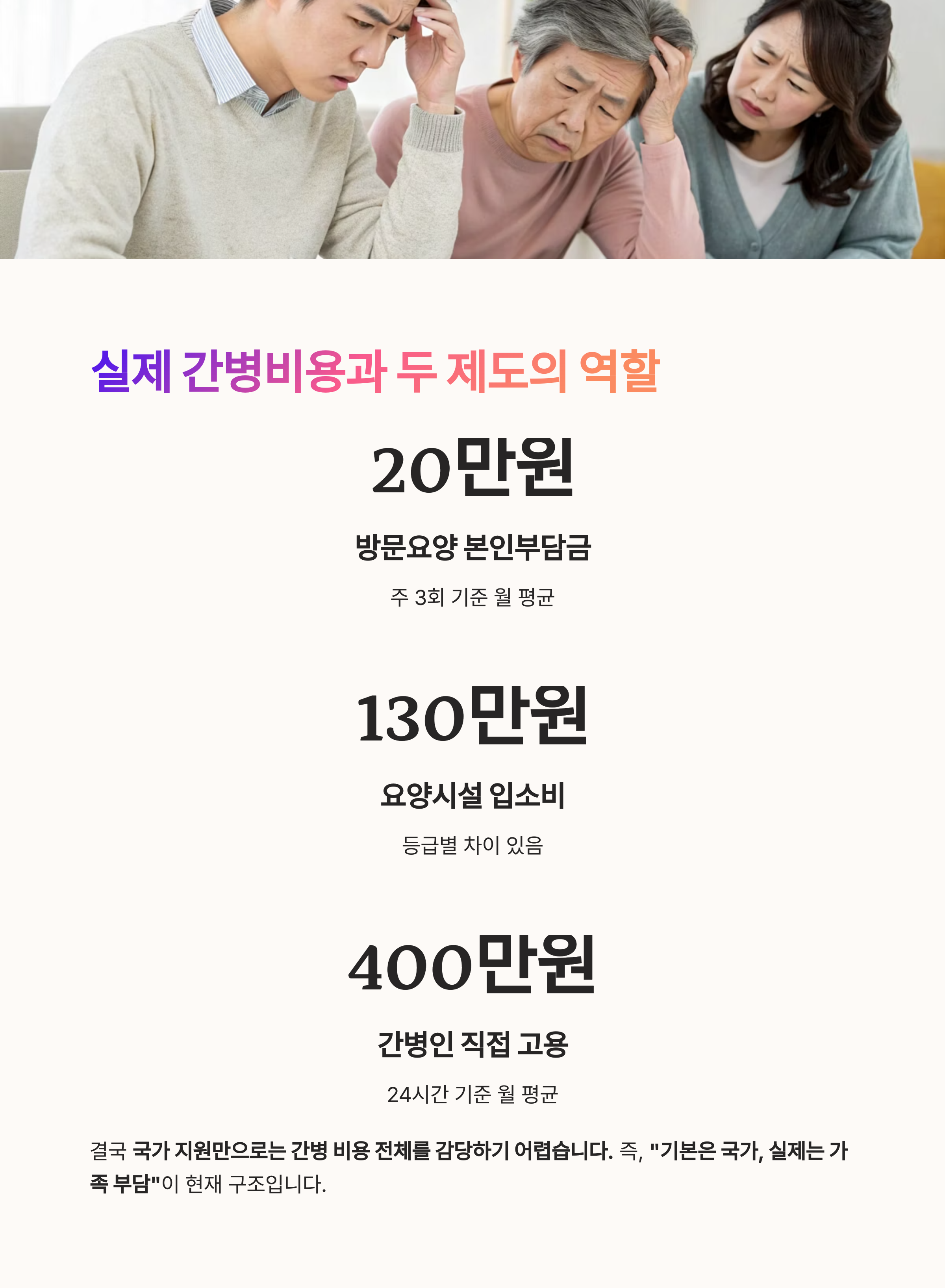 결국 국가 지원만으로는 간병 비용 전체를 감당하기 어렵습니다.