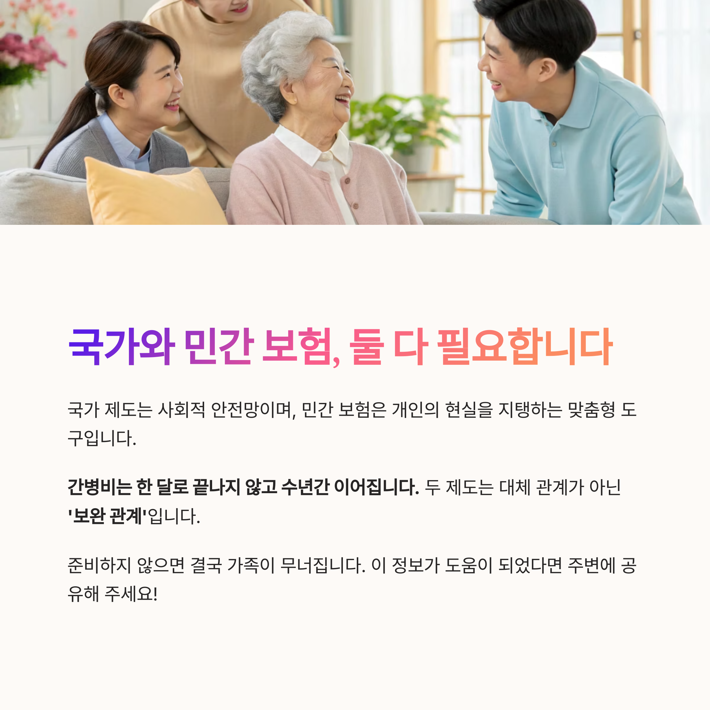 즉, **"기본은 국가, 실제는 가족 부담"**이라는 것이 현재 구조입니다.