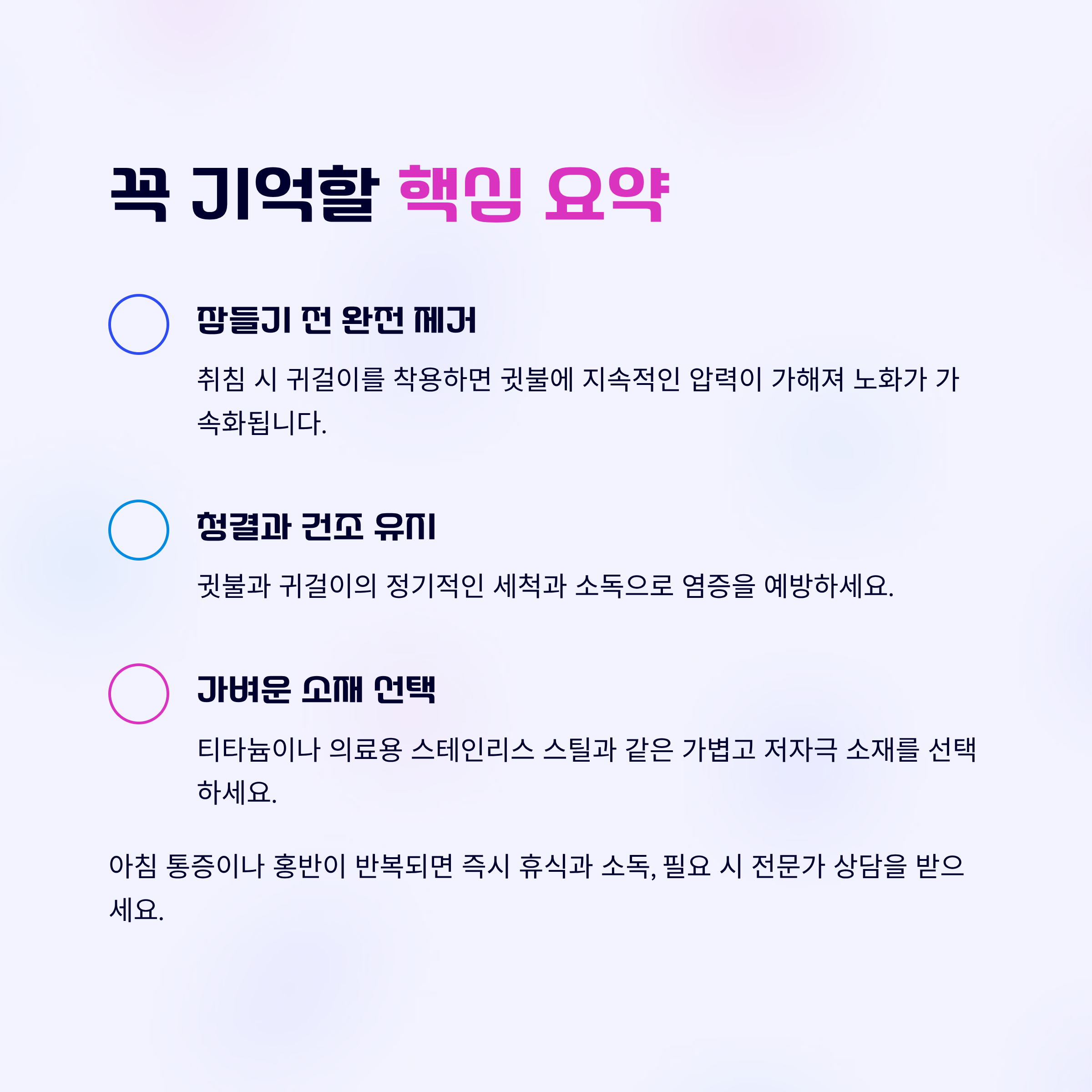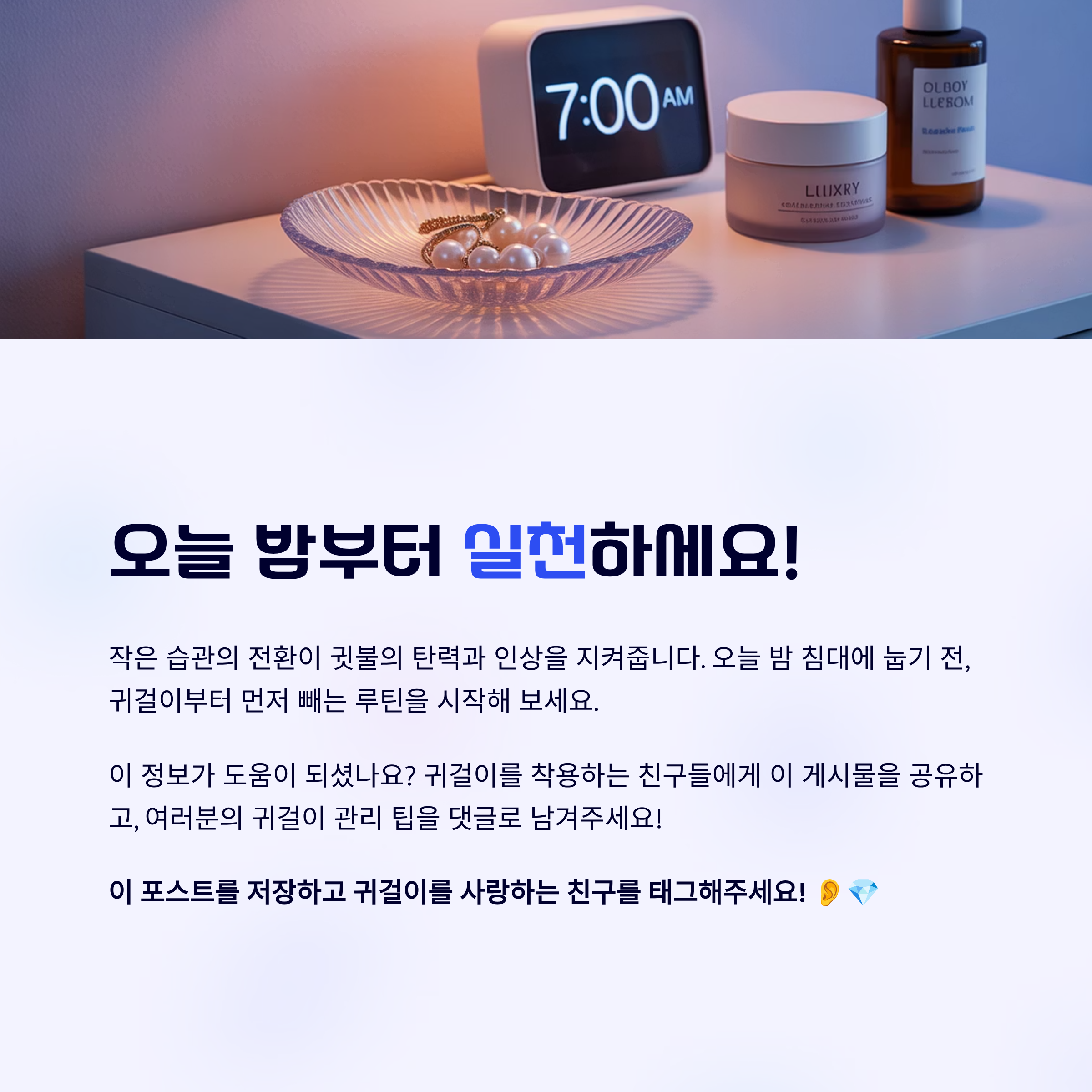 이어가세요. 작은 습관의 전환이 귓불의 탄력과 인상을 지켜줍니다.