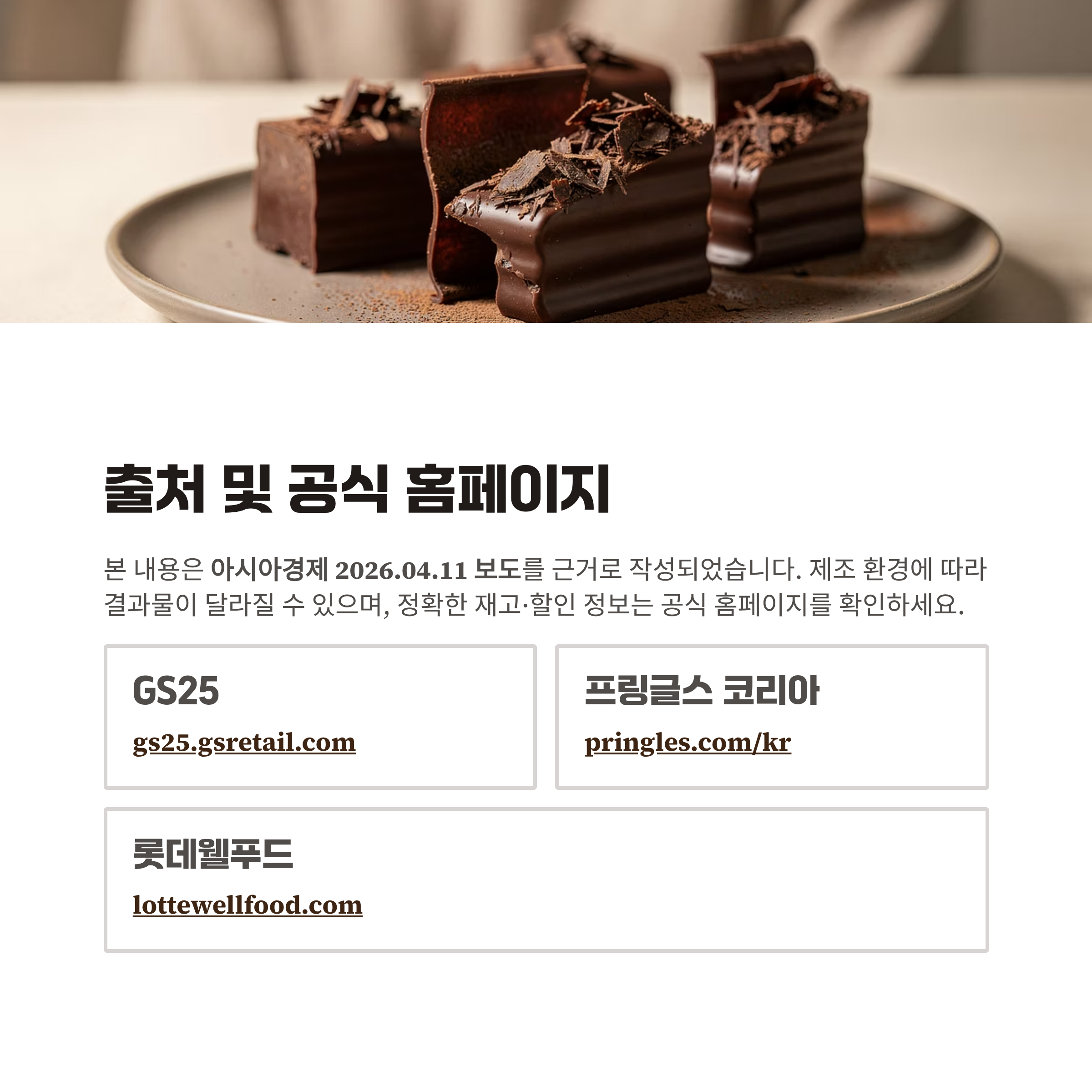 - 참고 자료 출처: 아시아경제 "두쫀쿠, 버터떡 다음은 '이것' - 프링글스 초코 블럭" (https://n.news.naver.com/article/print/277/0005748003)