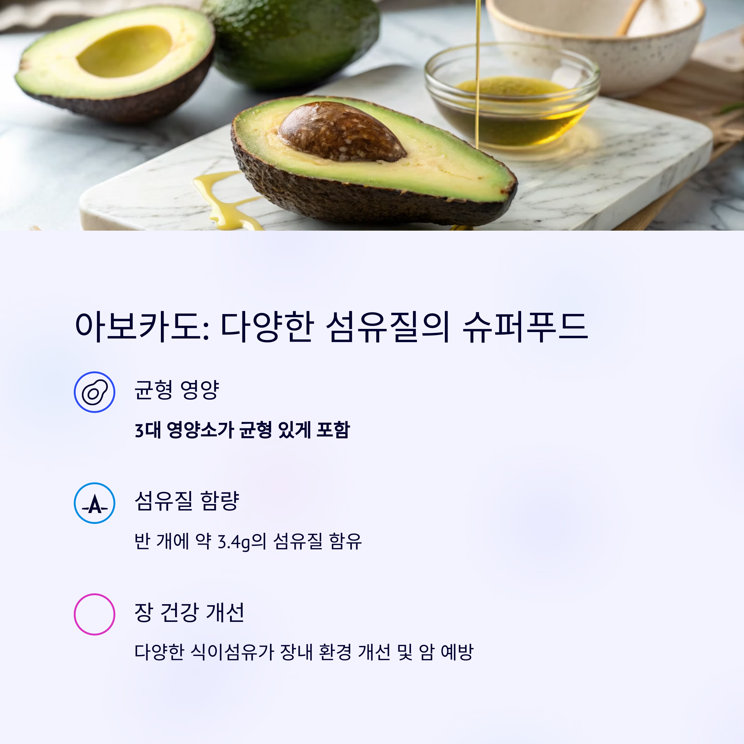 아보카도: 다양한 섬유질이 어우러진 슈퍼푸드