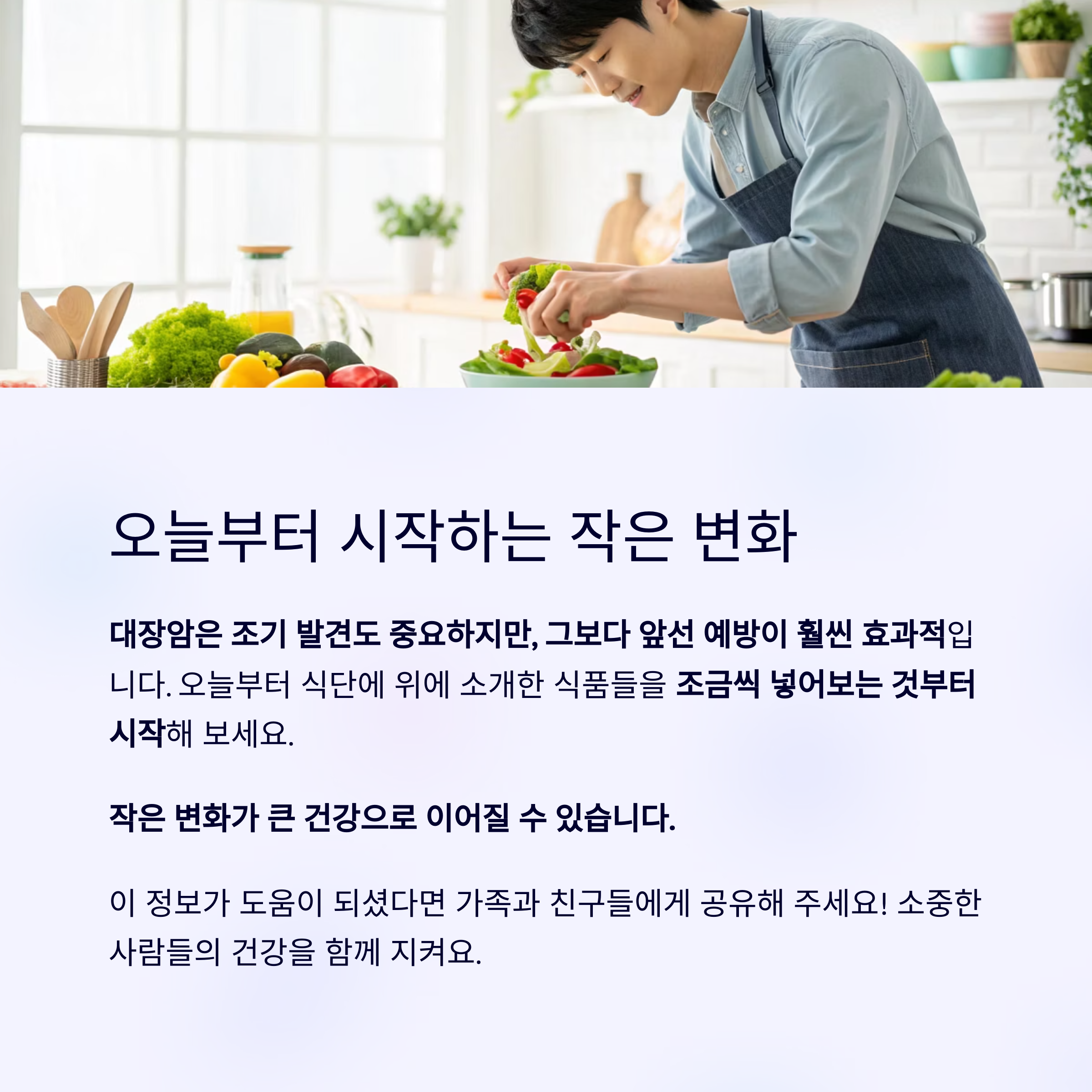 대장암은 조기 발견도 중요하지만, 그보다 앞선 예방이 훨씬 효과적입니다.