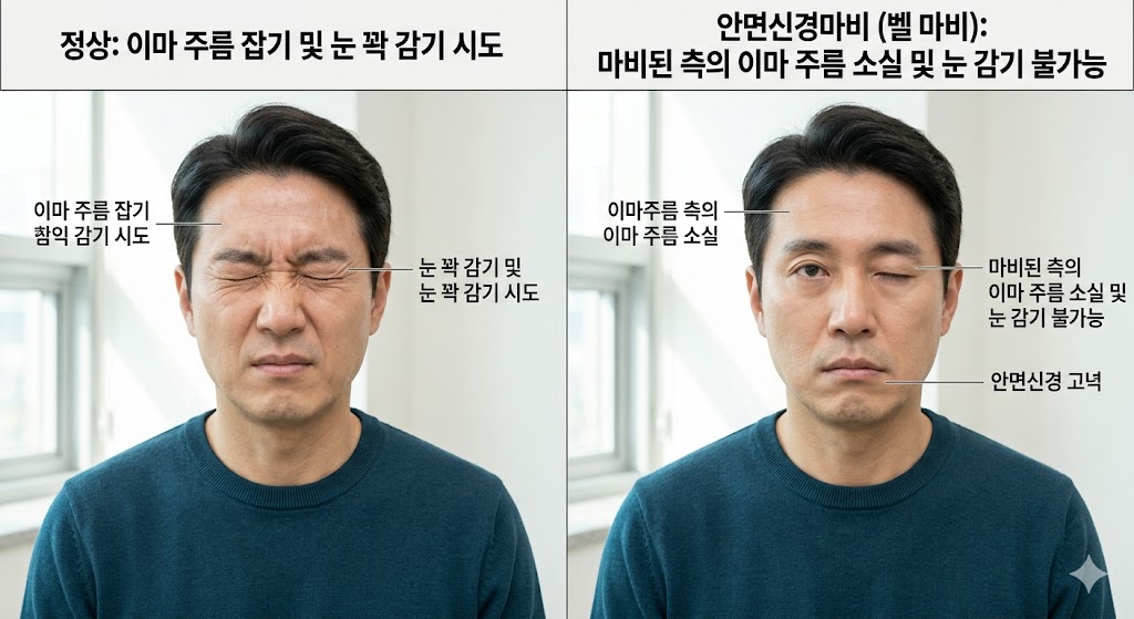 말이 어눌해진다고 해서 모두 뇌의 문제는 아니에요. 때로는 얼굴 근육을 담당하는 말초 신경에 문제가 생기는 **안면 마비(벨마비)**가 원인이 되기도 합니다.