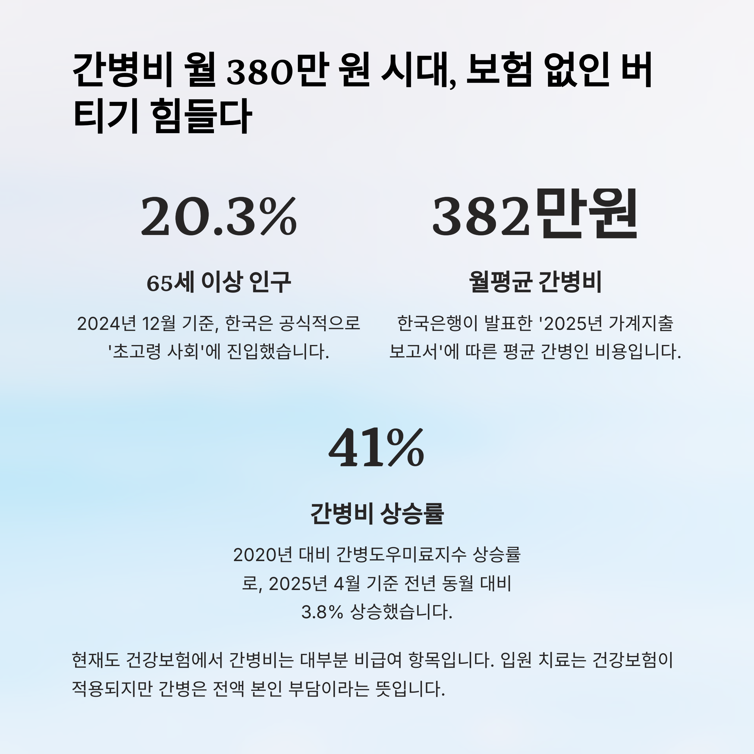 간병비 월 380만 원 시대, 보험 없인 버티기 힘들다