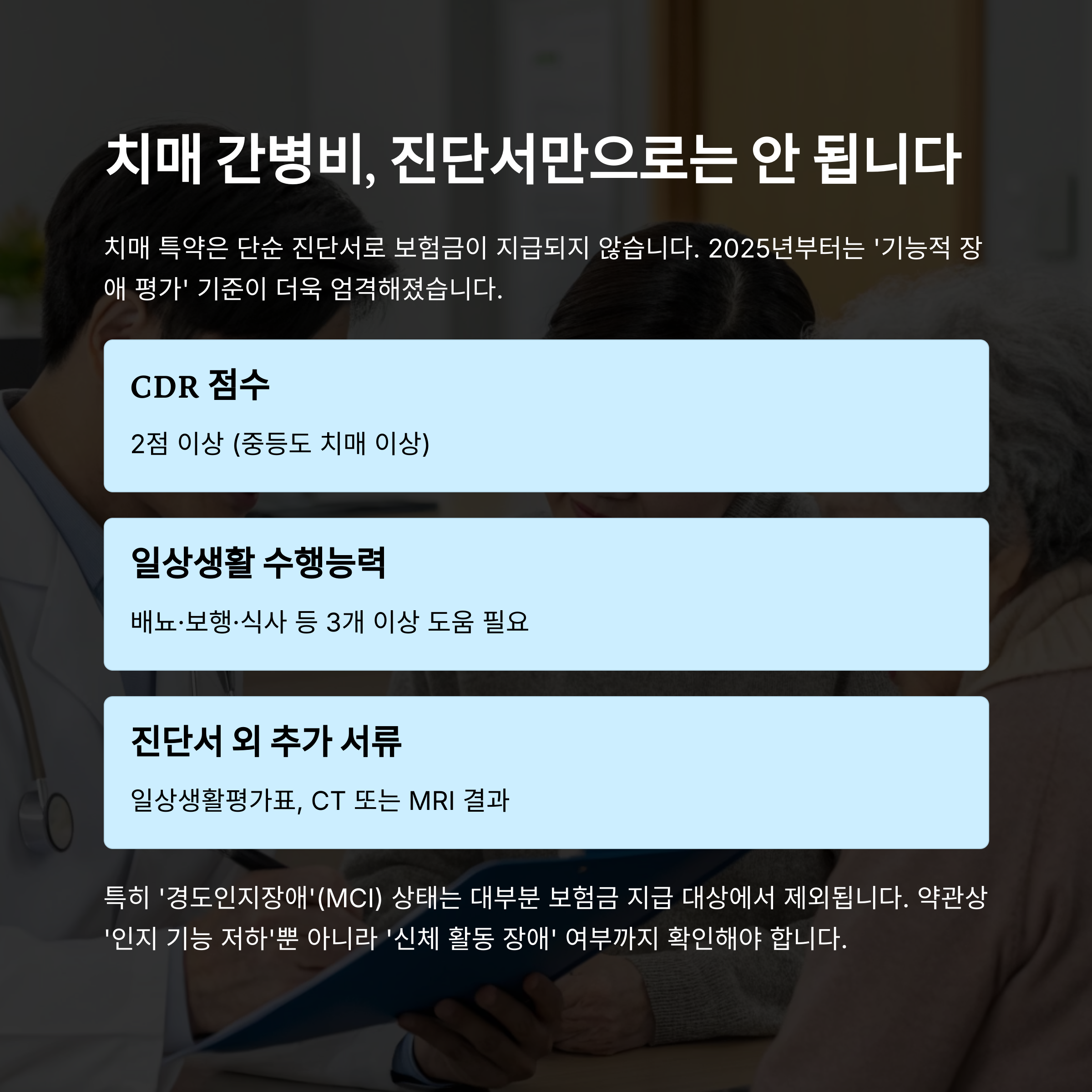 치매 간병비, 진단서만으로는 안 됩니다