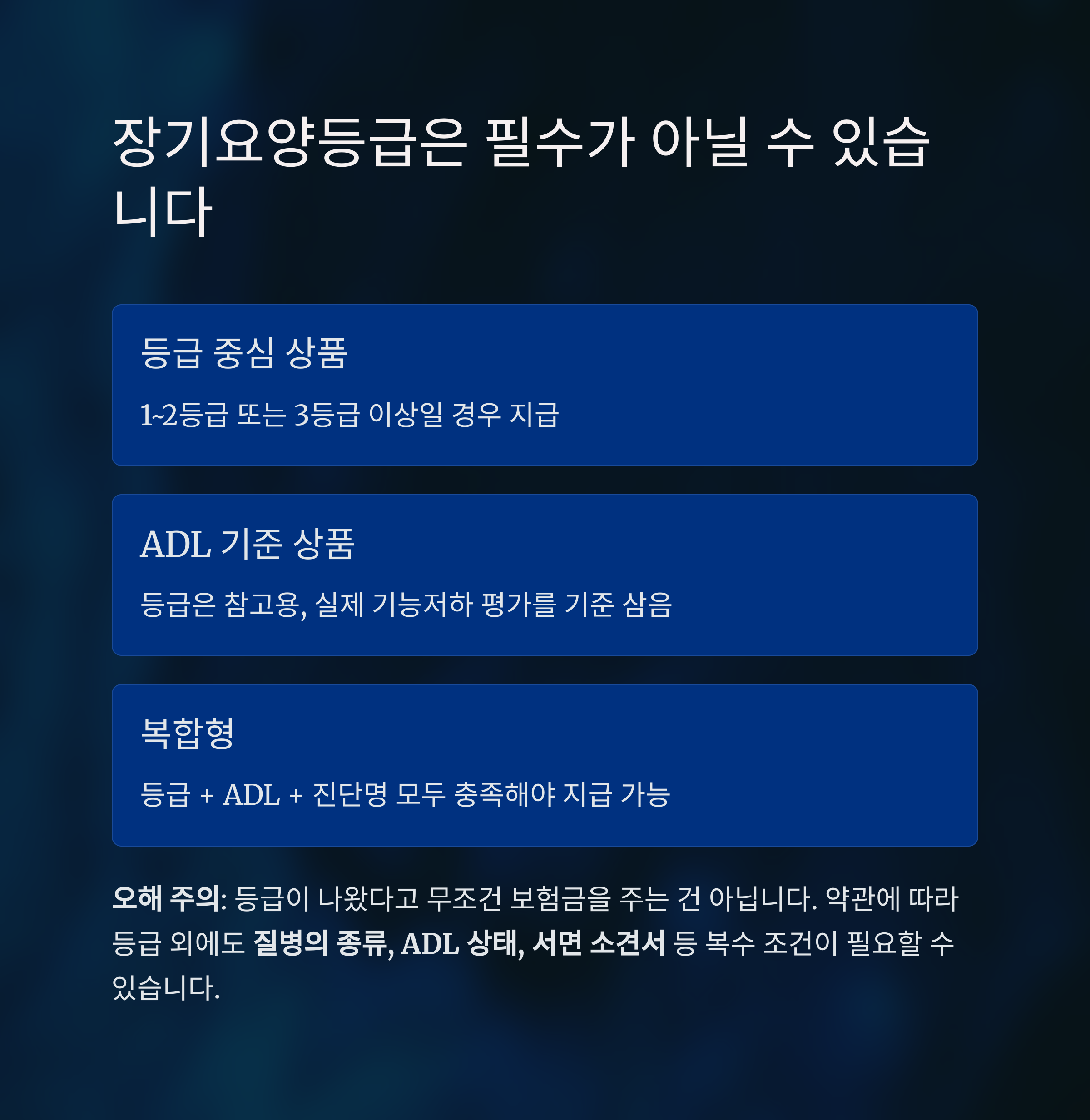 3. 장기요양등급은 ‘필수 요건’이 아닌 경우도 있다