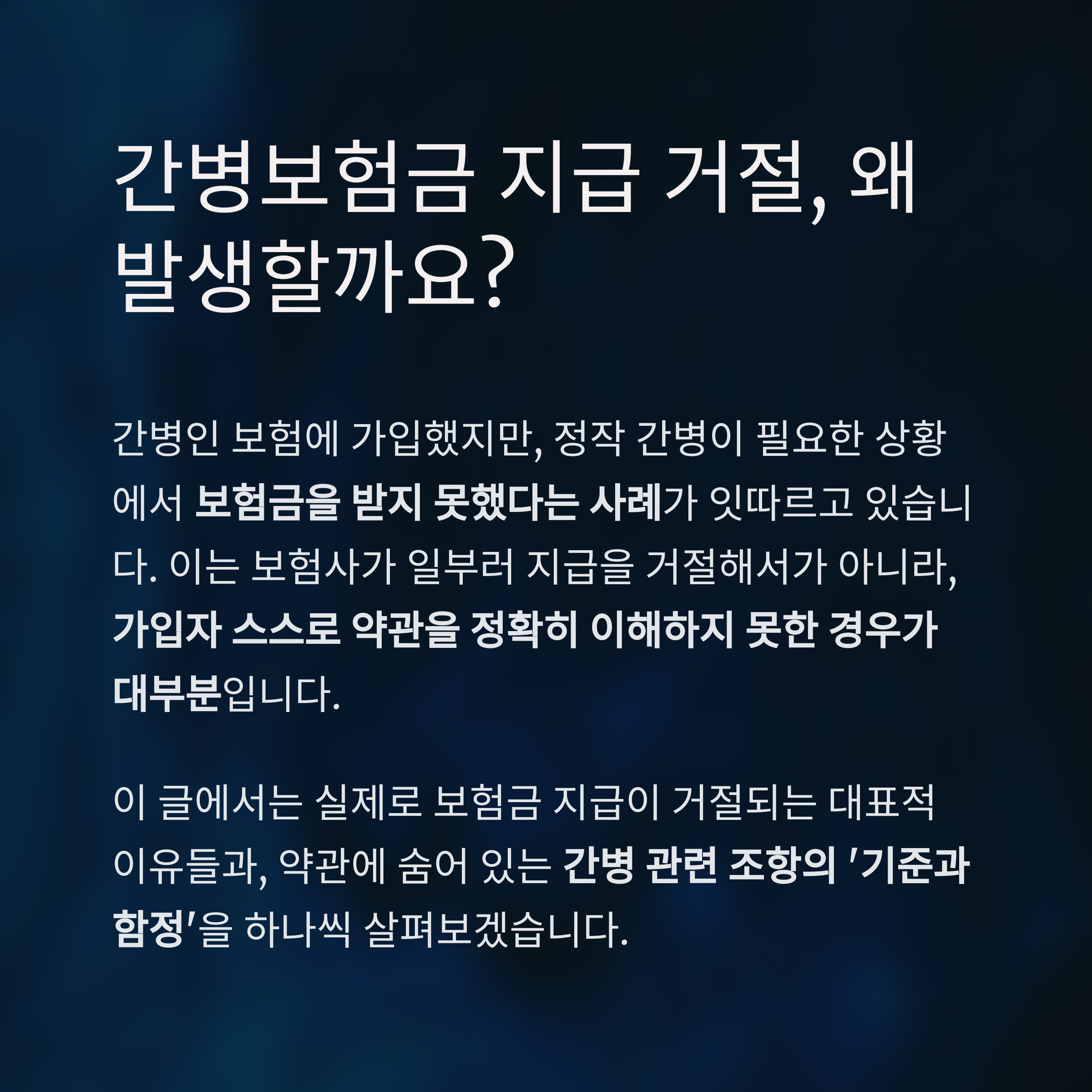 이는 보험사가 일부러 지급을 거절해서가 아니라, 가입자 스스로 약관을 정확히 이해하지 못한 경우가 대부분입니다.