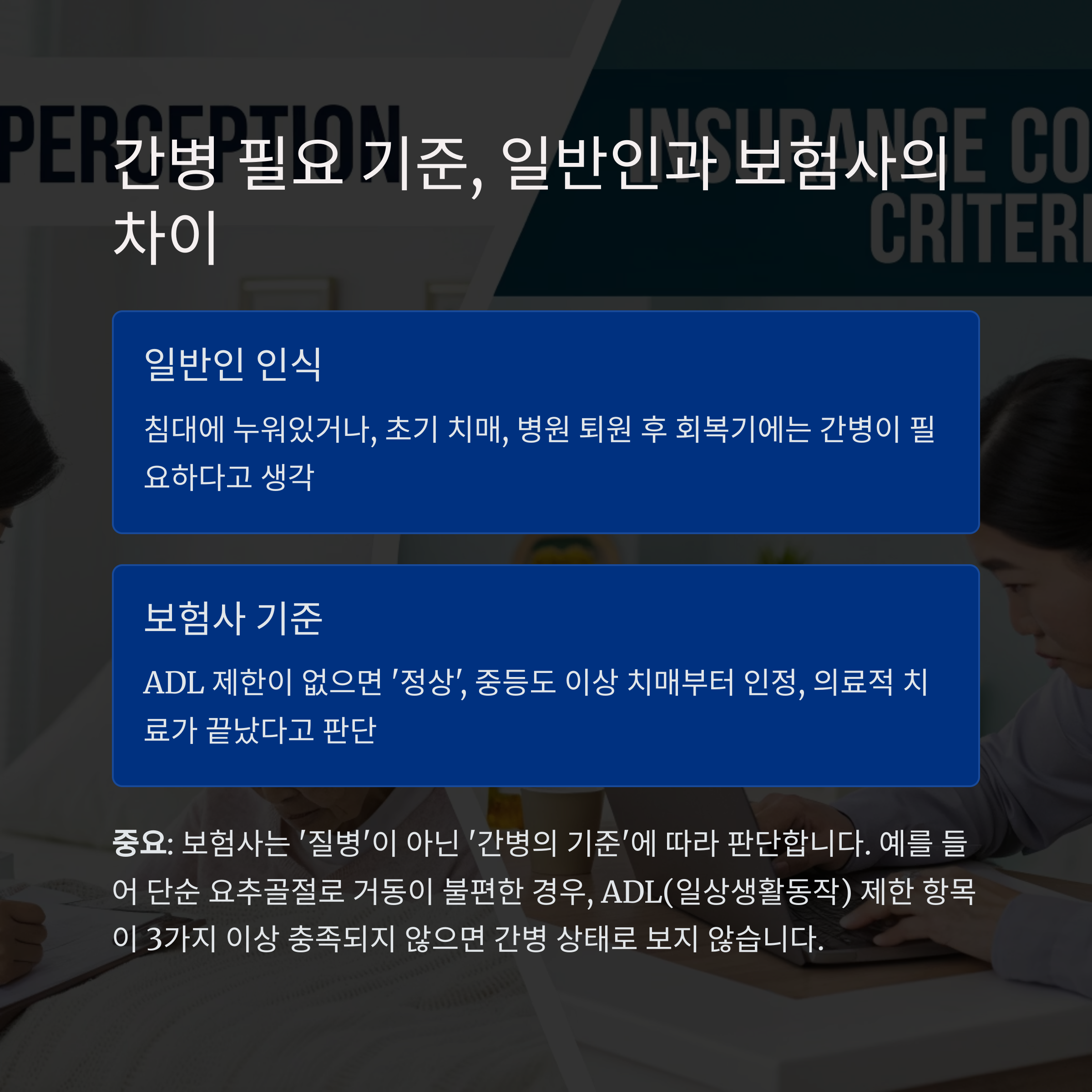 1. ‘간병 필요’ 기준이 일반인과 보험사의 인식이 다르다
