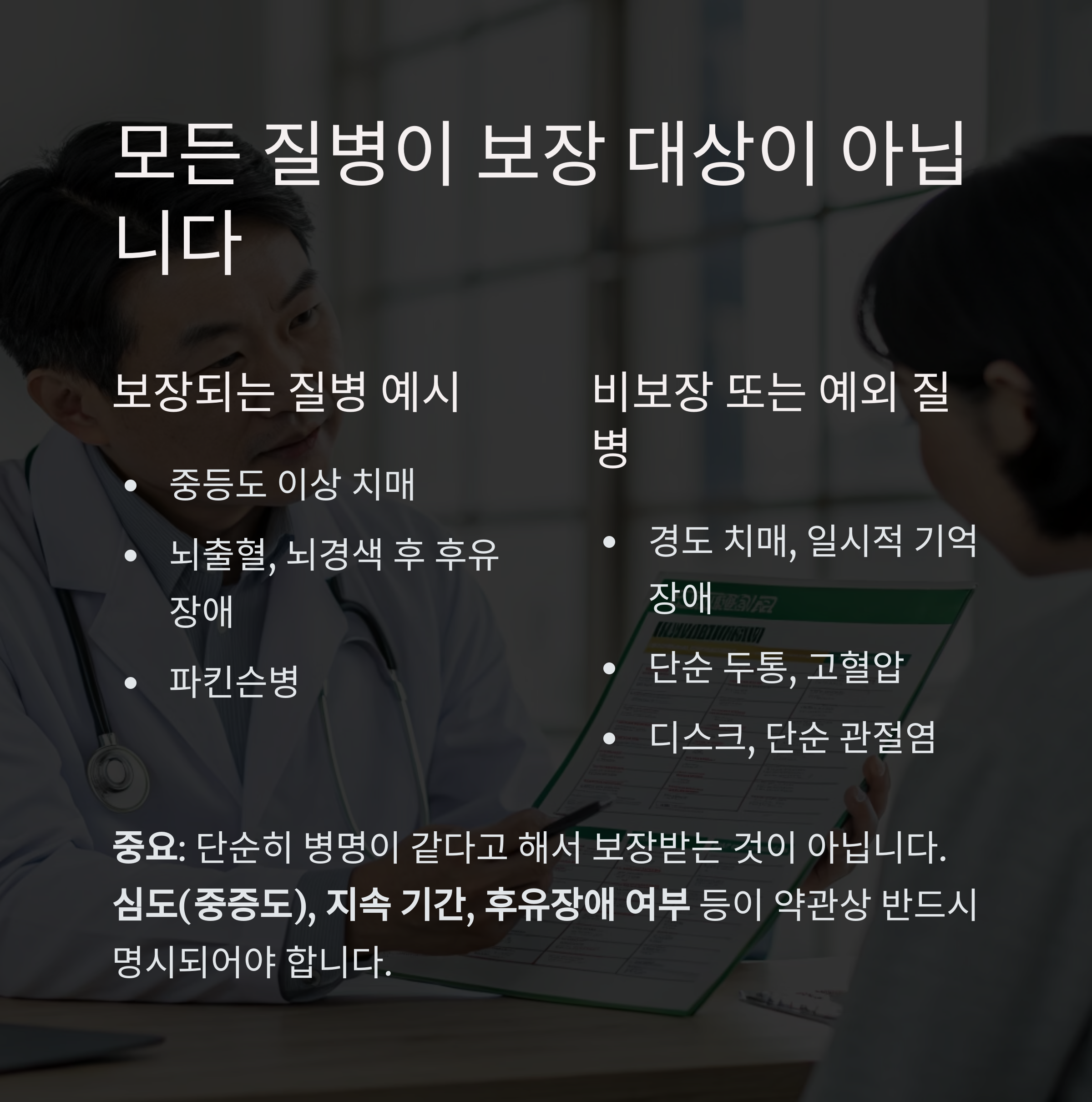 중요: 단순히 병명이 같다고 해서 보장받는 것이 아닙니다.