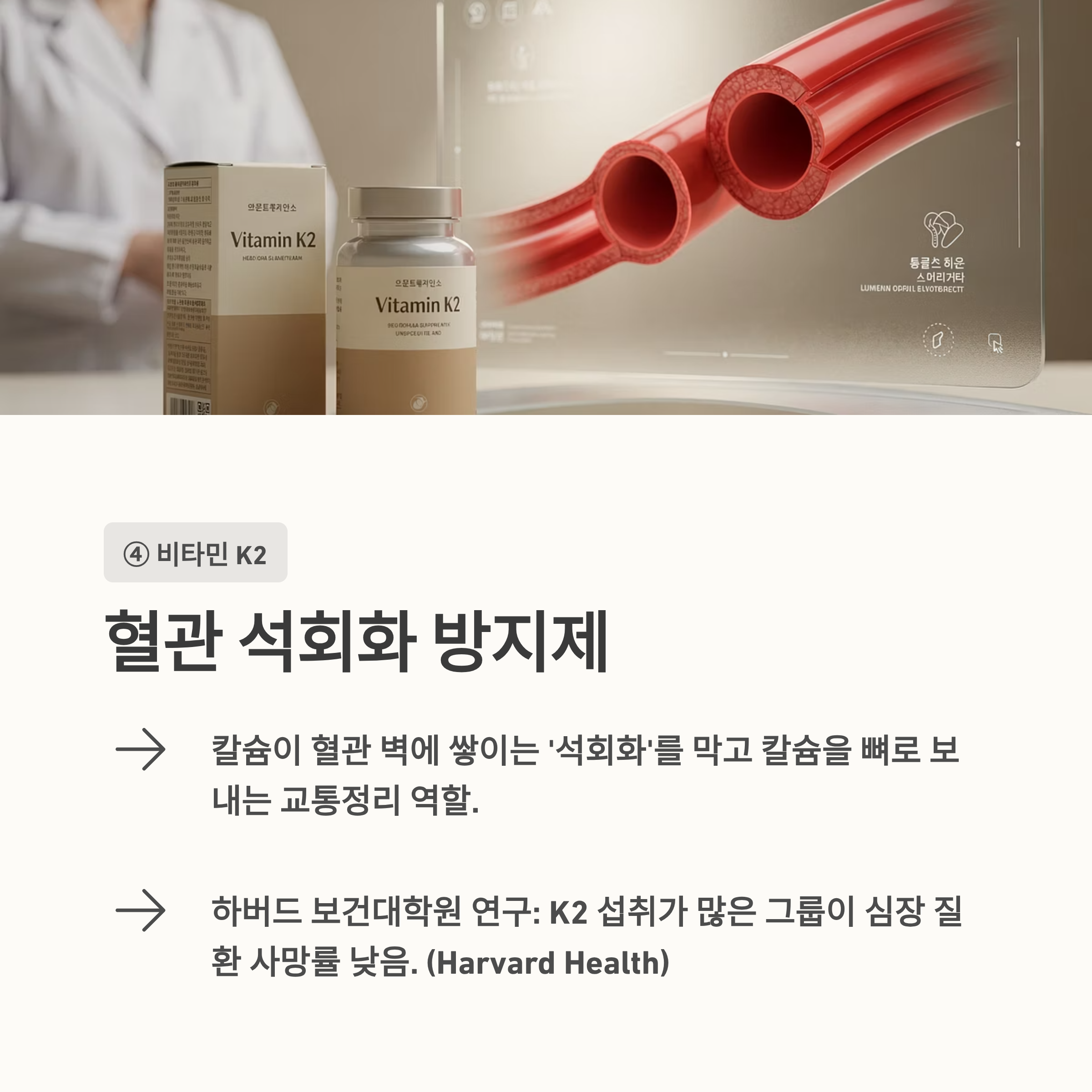 ④ 비타민 K2 - 혈관 석회화(딱딱해짐) 방지