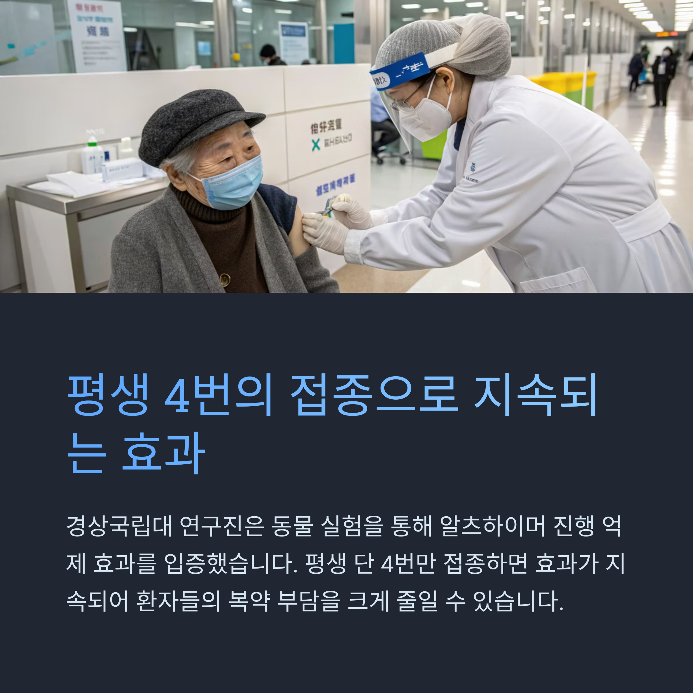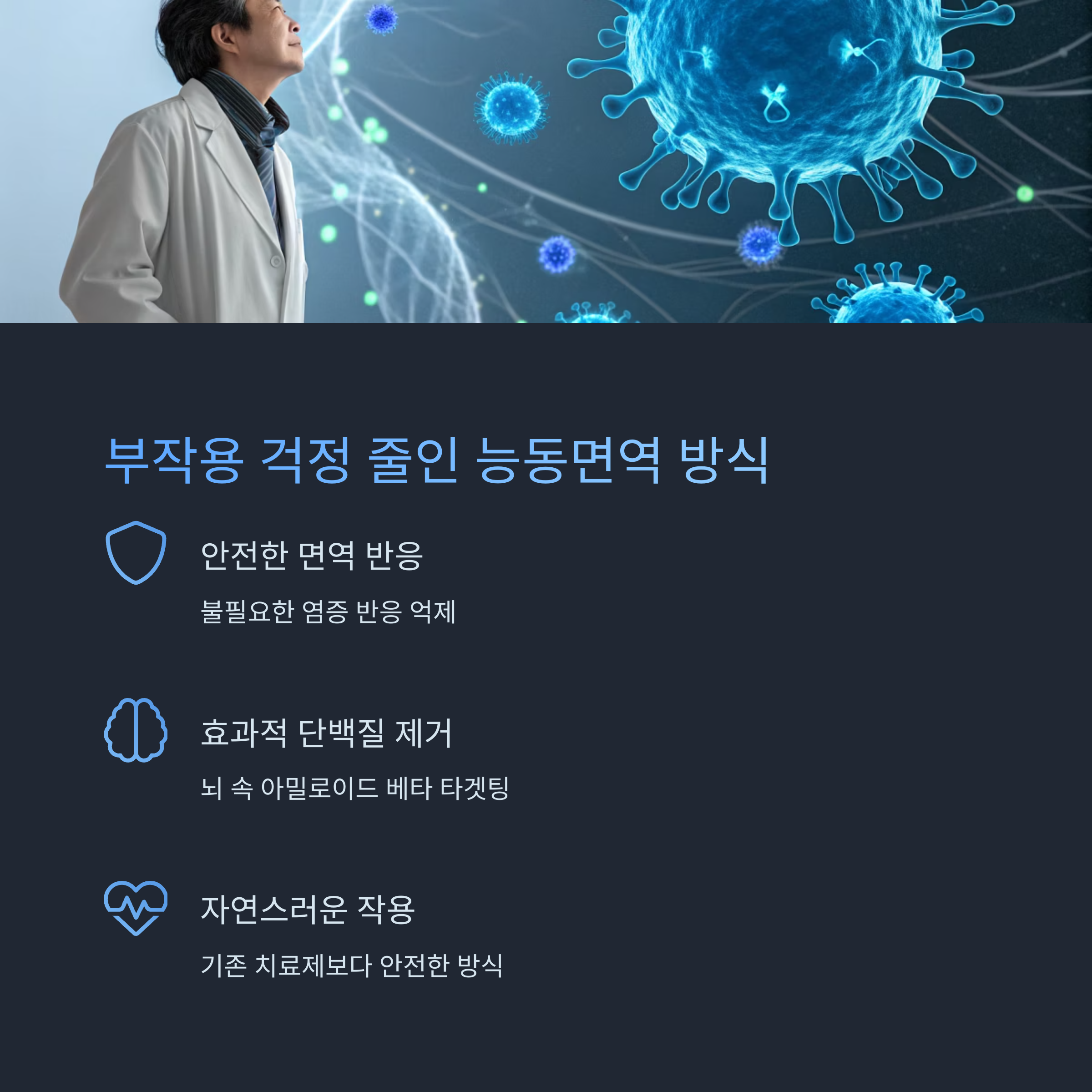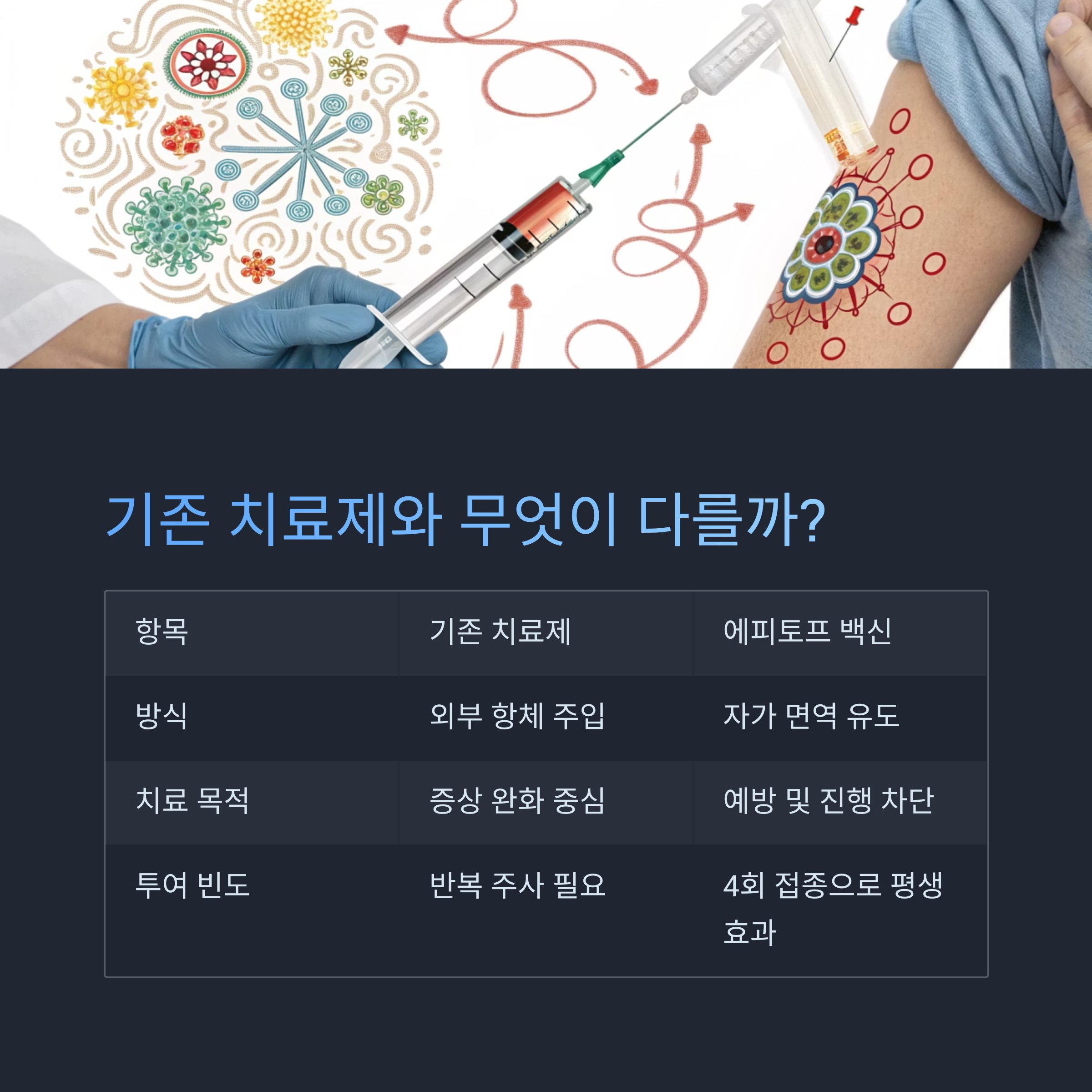 능동면역 방식이라는 점에서 기존 치료제와 차별화됩니다.