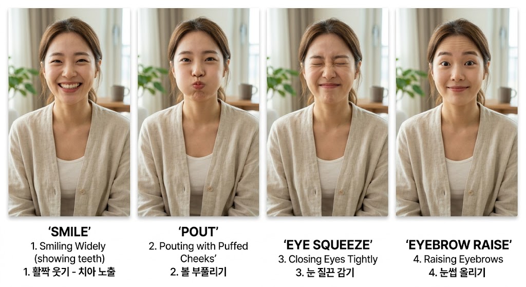 - 눈 크게 뜨고 감기: 한쪽 눈이 꽉 감기지 않고 흰자위가 보인다면(벨 현상) 즉시 조치가 필요합니다.