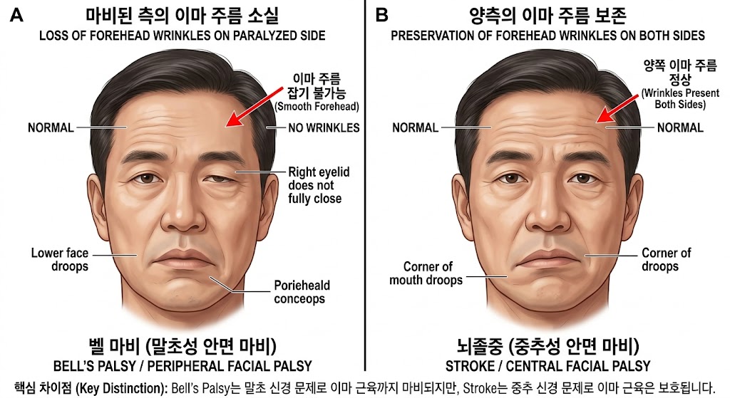 2. 뇌졸중(중추성) vs 벨마비(말초성) 감별하는 결정적 차이