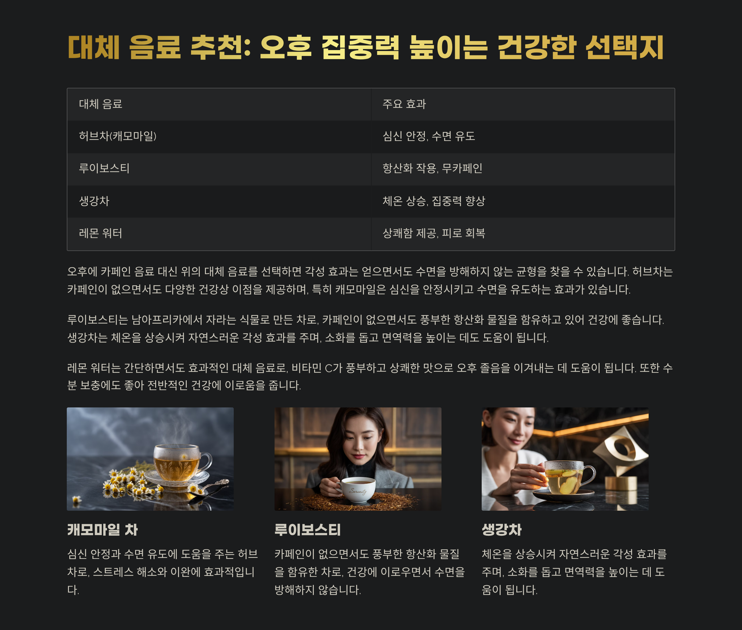 대체 음료 추천: 오후 집중력 높이는 건강한 선택지