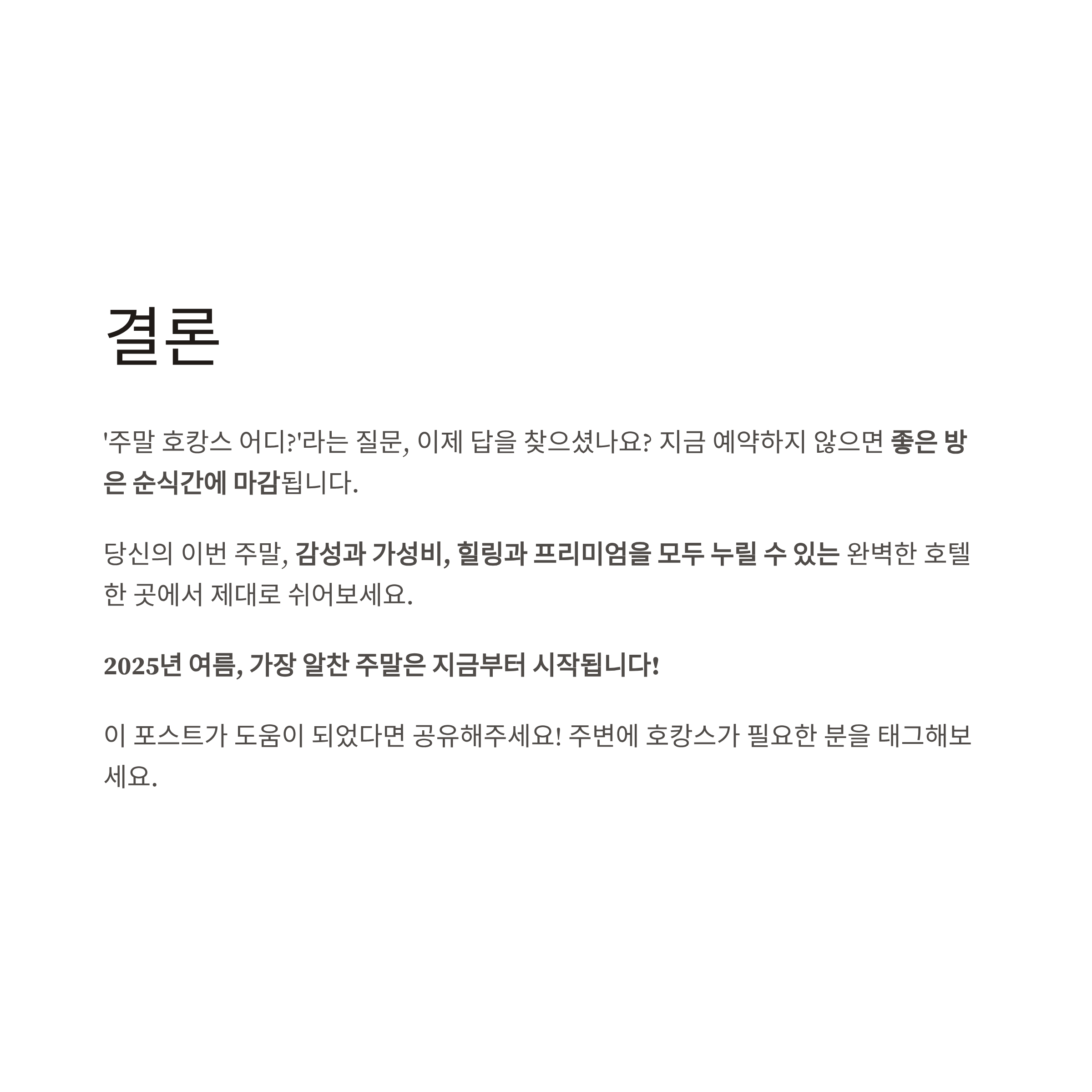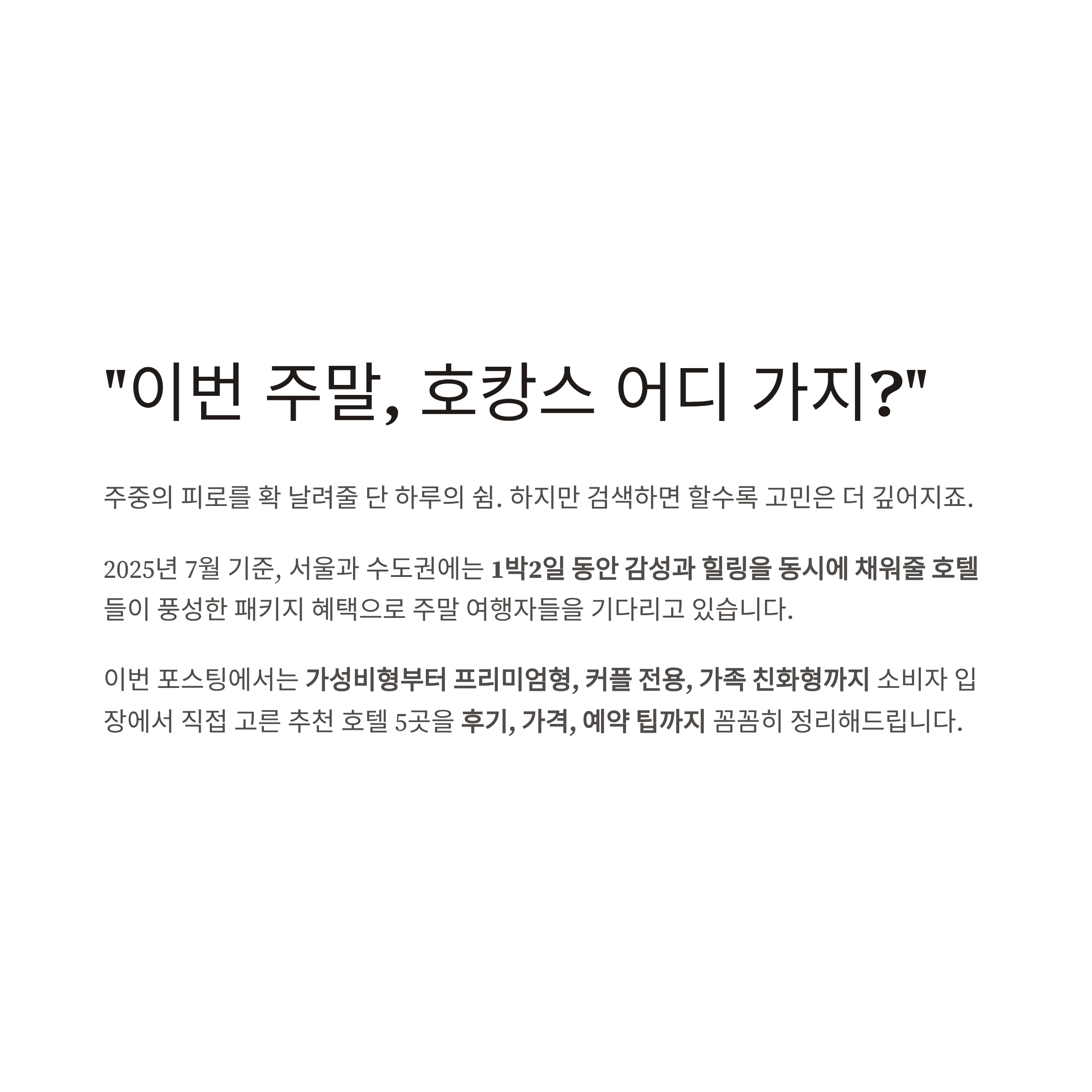 ‘주말 호캉스 어디?’라는 질문, 이제 답을 찾으셨나요?