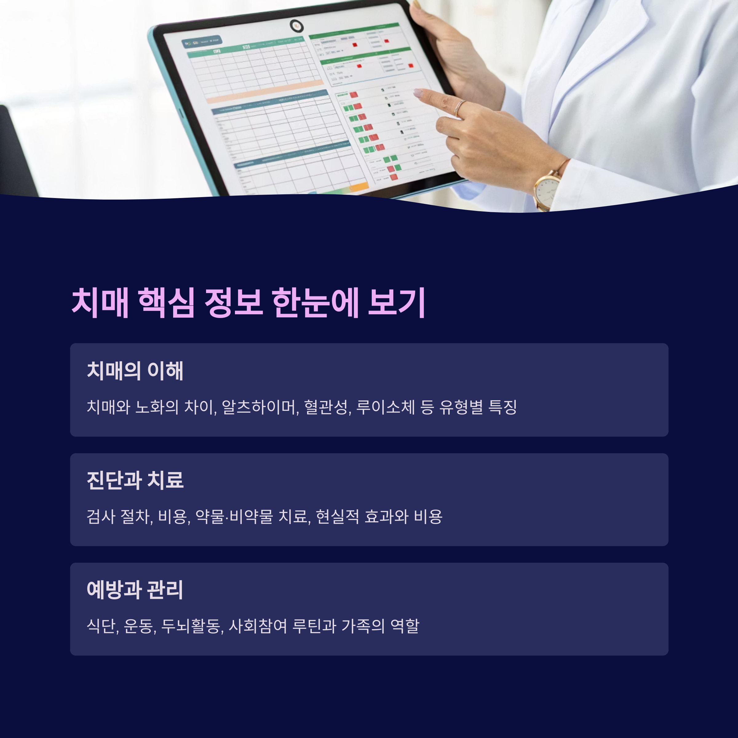 | 4편 | 치매 진단과 검사 | 검사 절차, 비용, 진단기관 정리 |