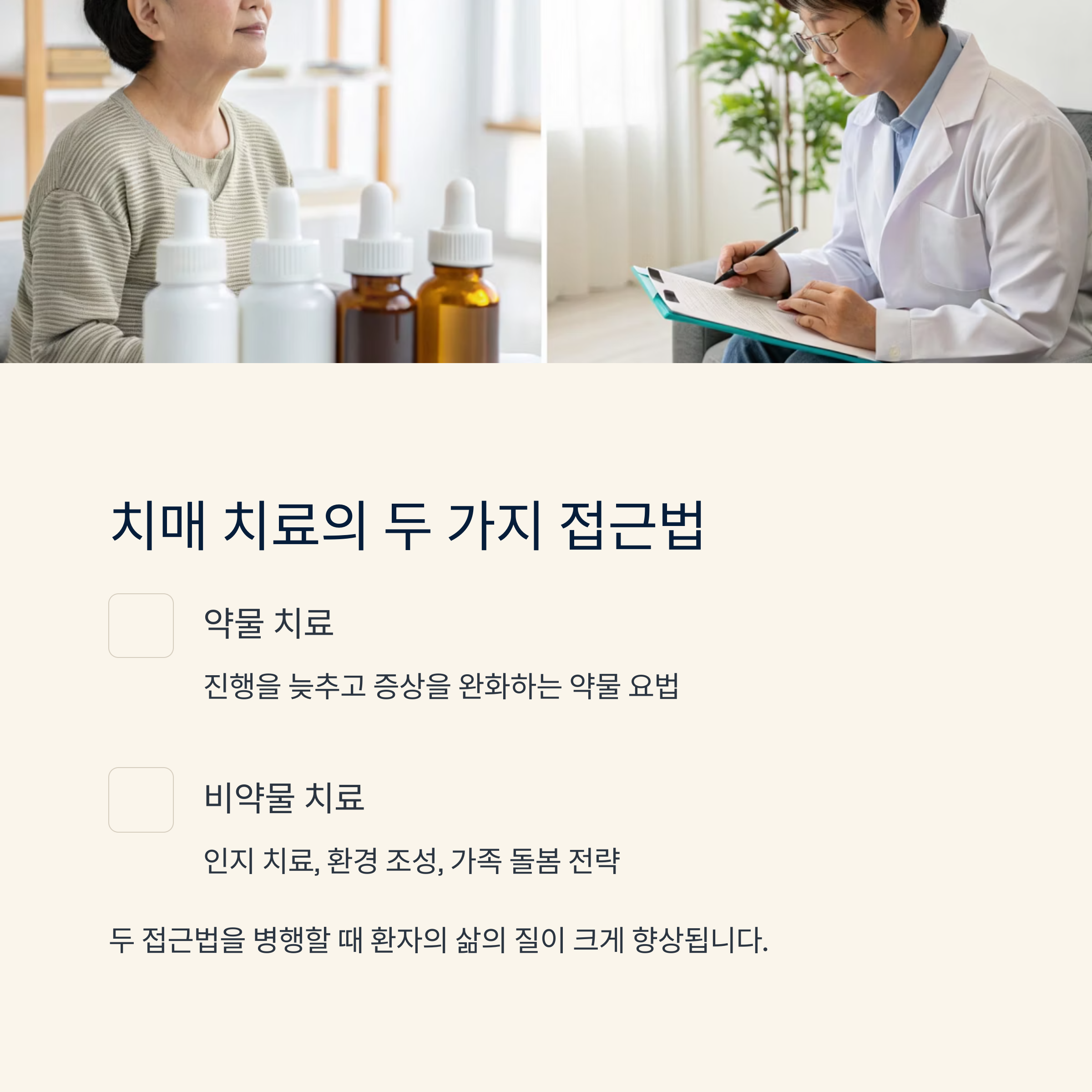 특히 약물치료와 함께 비약물적 인지 치료, 환경 조성, 가족의 돌봄 전략이 병행될 때