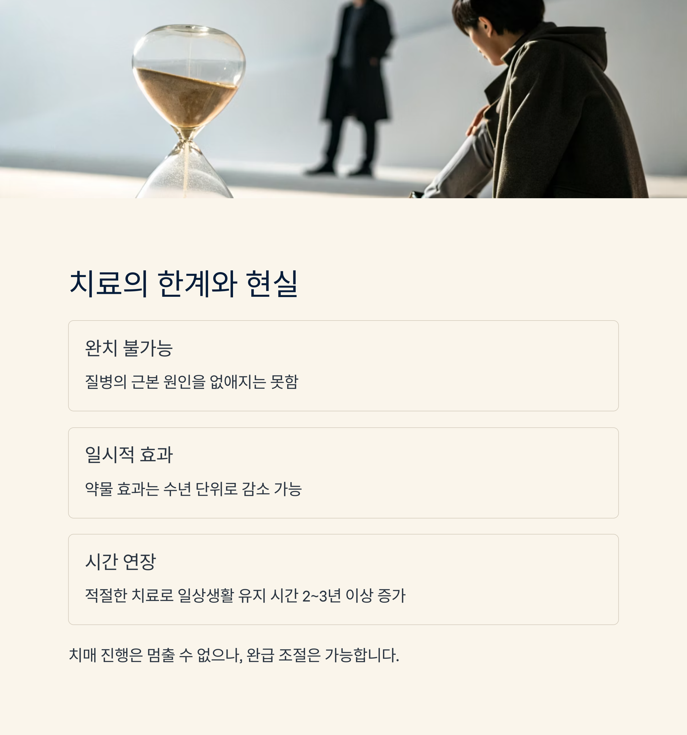치료의 한계 – 완치보다는 ‘속도 조절’이 핵심
