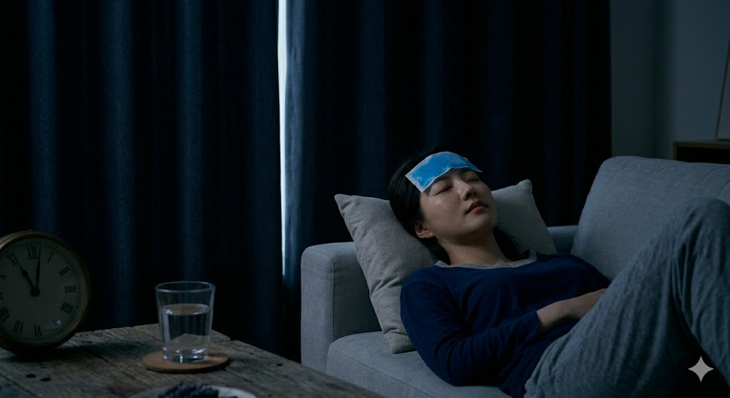 - 수분 보충과 냉찜질: 탈수는 통증을 악화시키는 주범이에요. 시원한 물을 마시고 차가운 팩을 관자놀이에 대어 혈관의 과도한 확장을 진정시켜 주세요.