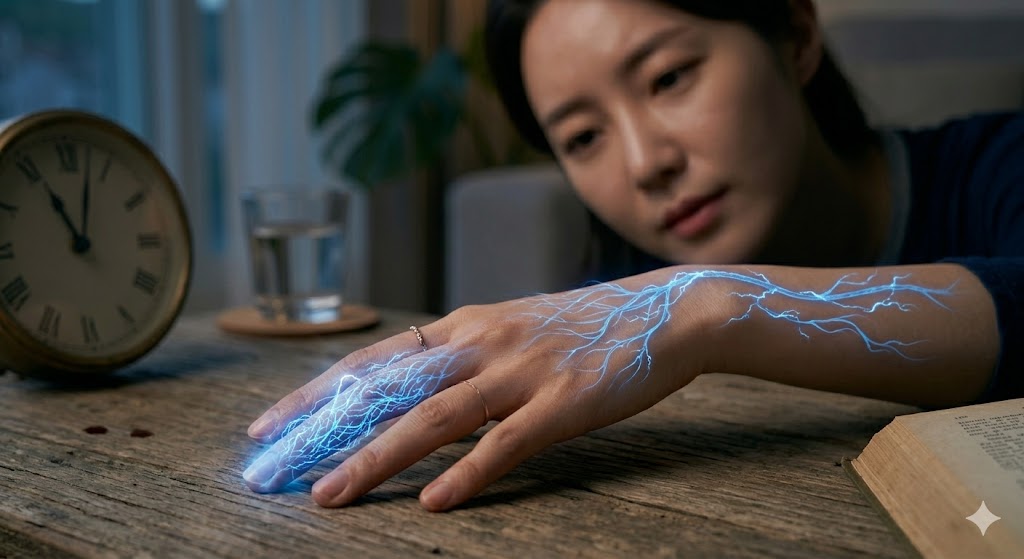 - 감각 이상: 손가락 끝에서 시작된 저릿한 느낌이 팔을 타고 올라와 얼굴이나 입술 주변까지 번지는 경우가 있어요. 핀으로 콕콕 찌르는 듯한 불쾌한 감각이죠.