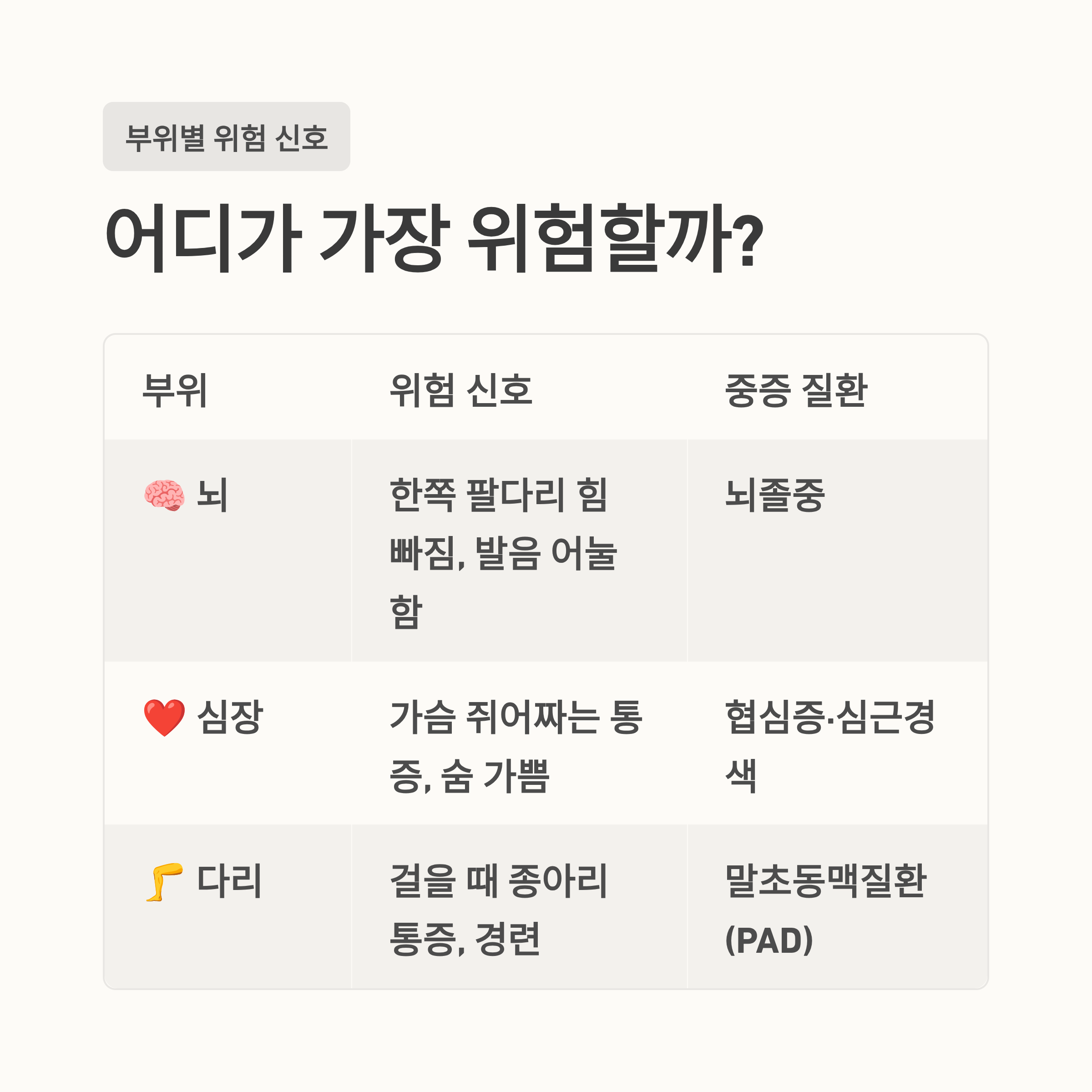 - 부위별 혈액순환 문제: 뇌, 심장, 다리 골든타임