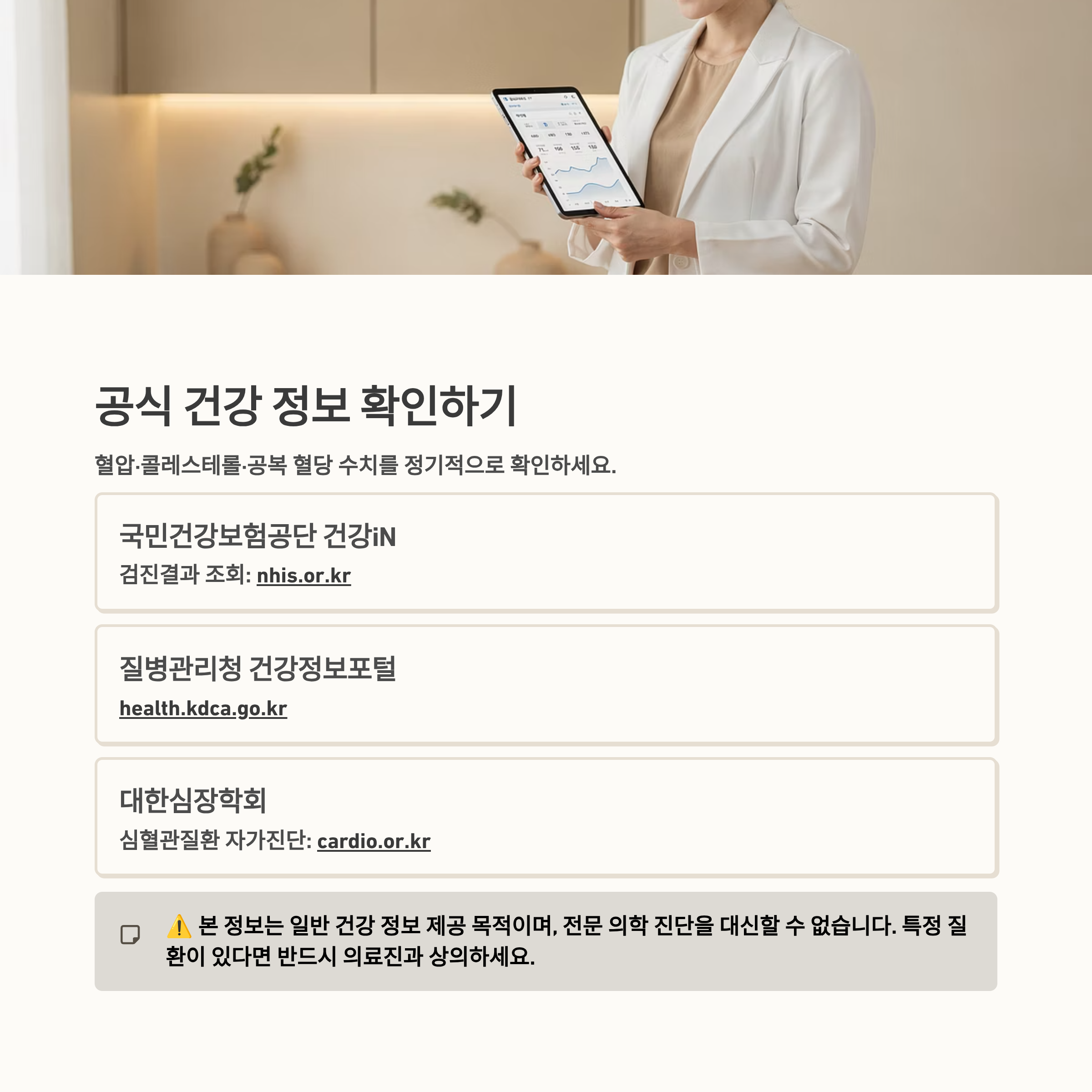 - 대한심장학회 (심혈관질환 자가진단): https://www.cardio.or.kr