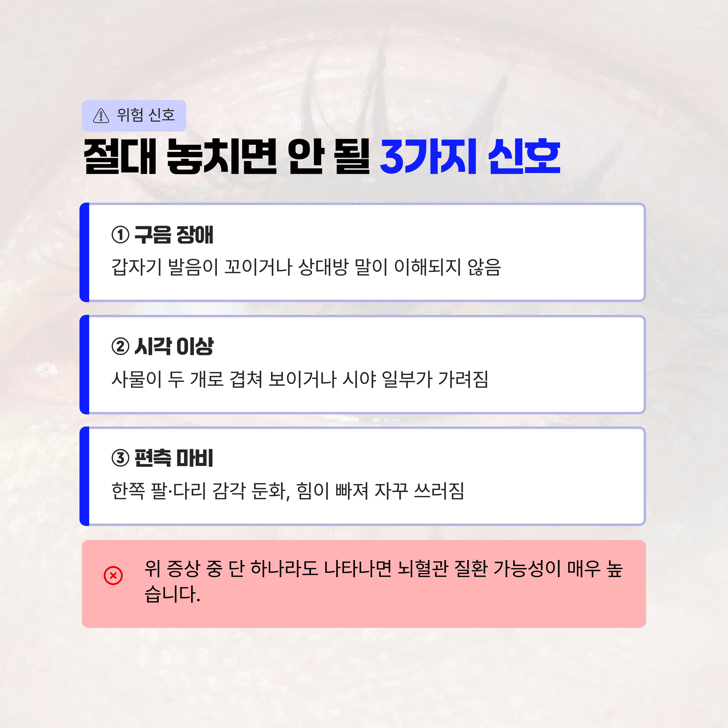 ⚠️ 3. 절대 놓치면 안 될 뇌 질환 의심 신호 3가지
