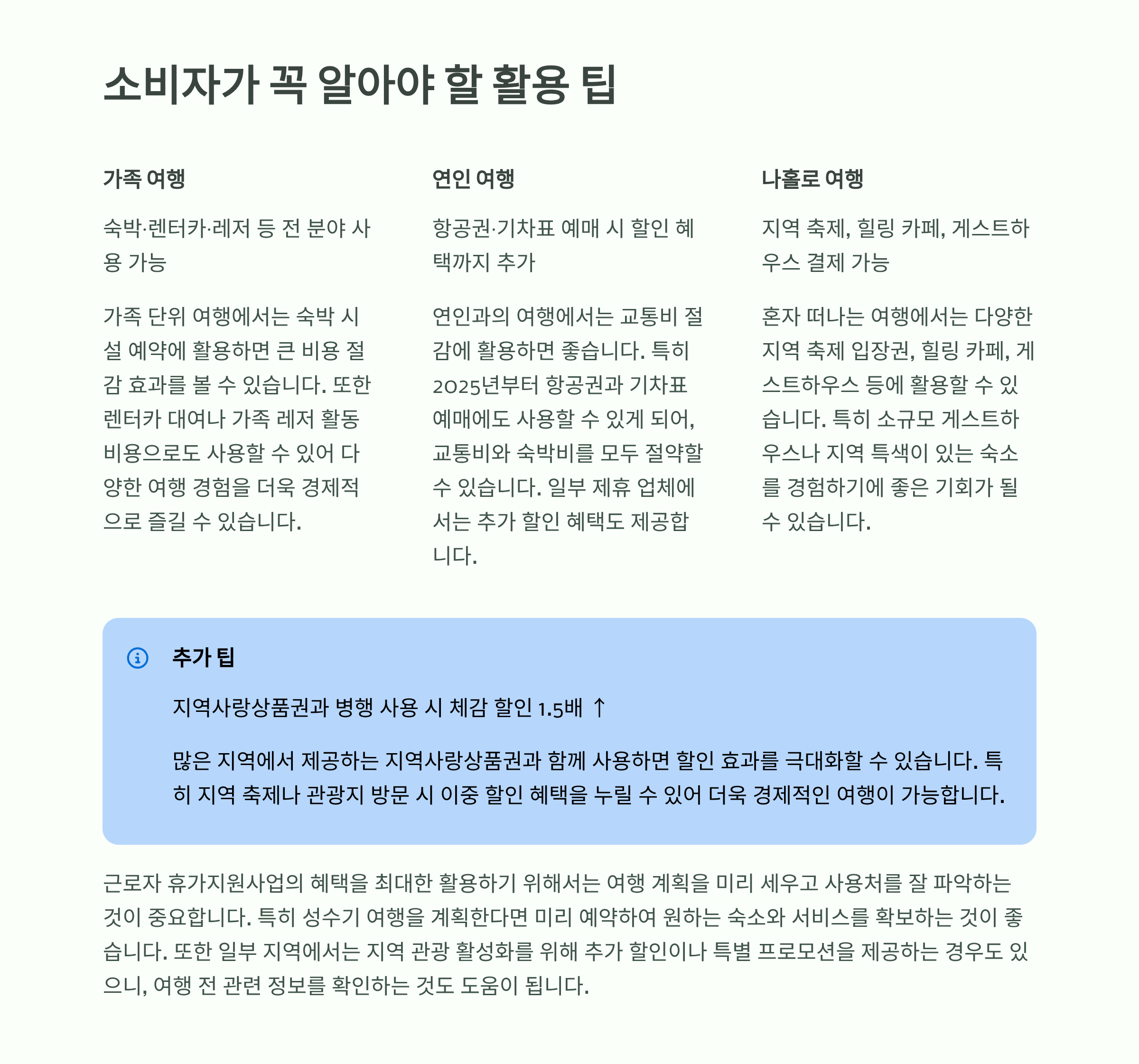 5️⃣ 휴가비 사용 – 숙박, 여행사, 관광지 등에서 현금처럼 사용 가능