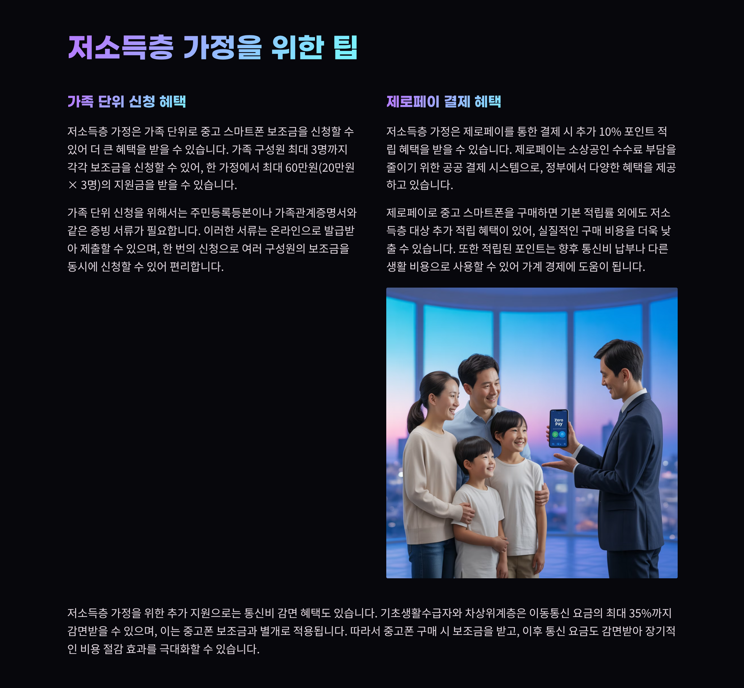 - “가족 3대 신청해서 총 60만원 절약, 통신비도 줄었어요.” – 35세 주부