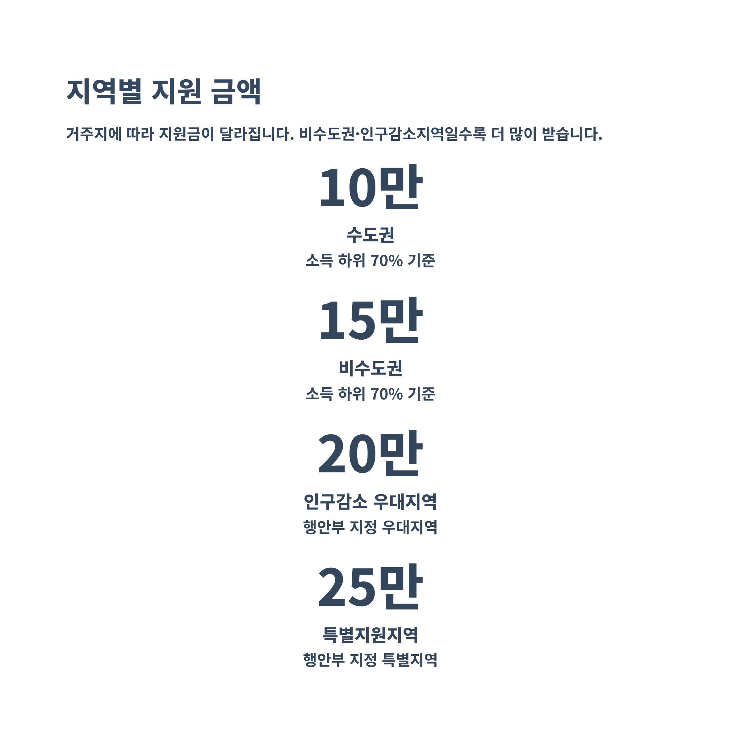 - 특별지원지역: 1인당 25만원 (최우선 지원 대상 지역)