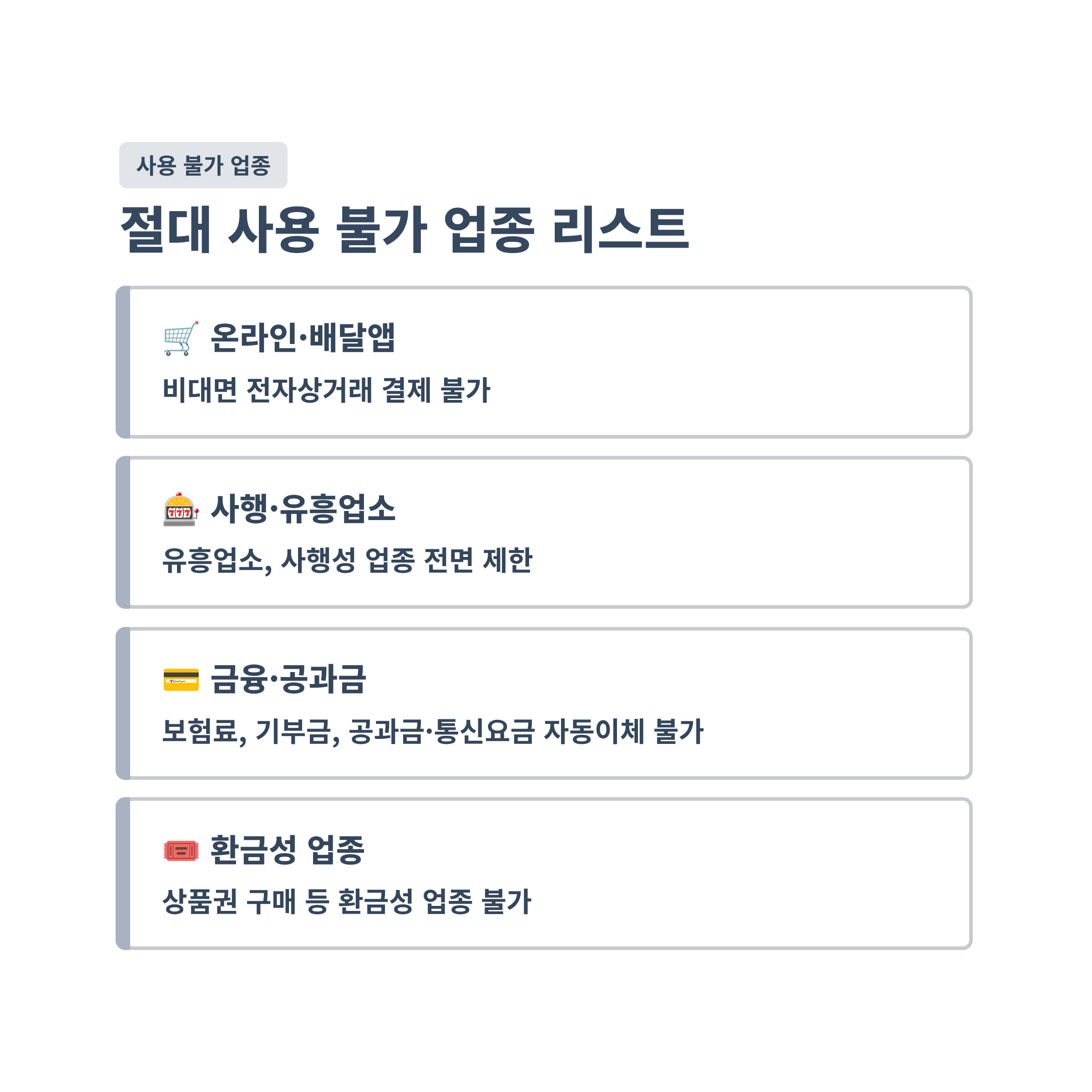 ❌ 사용 불가능한 곳 (제한 업종)