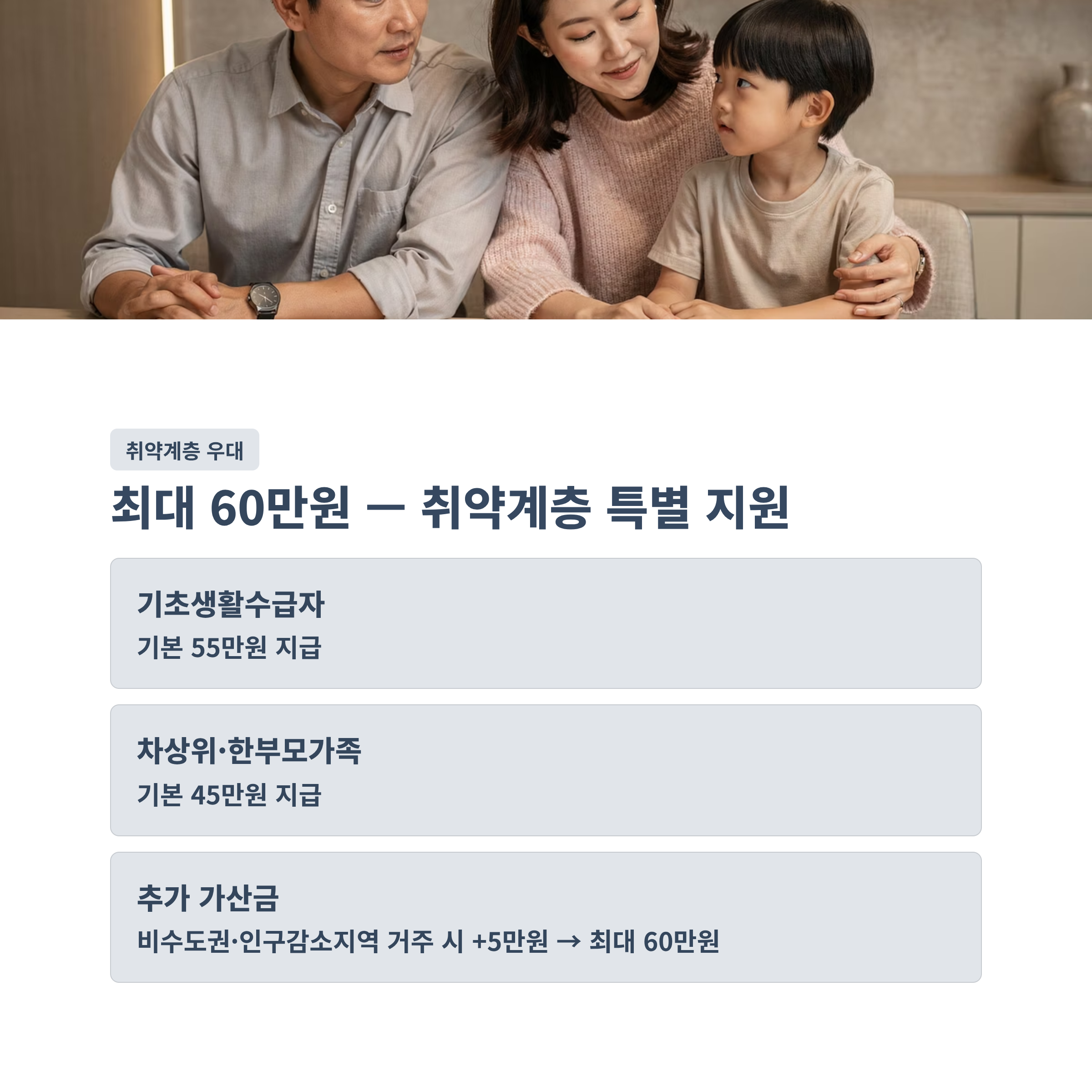 - 취약계층 우대 지원 안내 (최대 60만원)