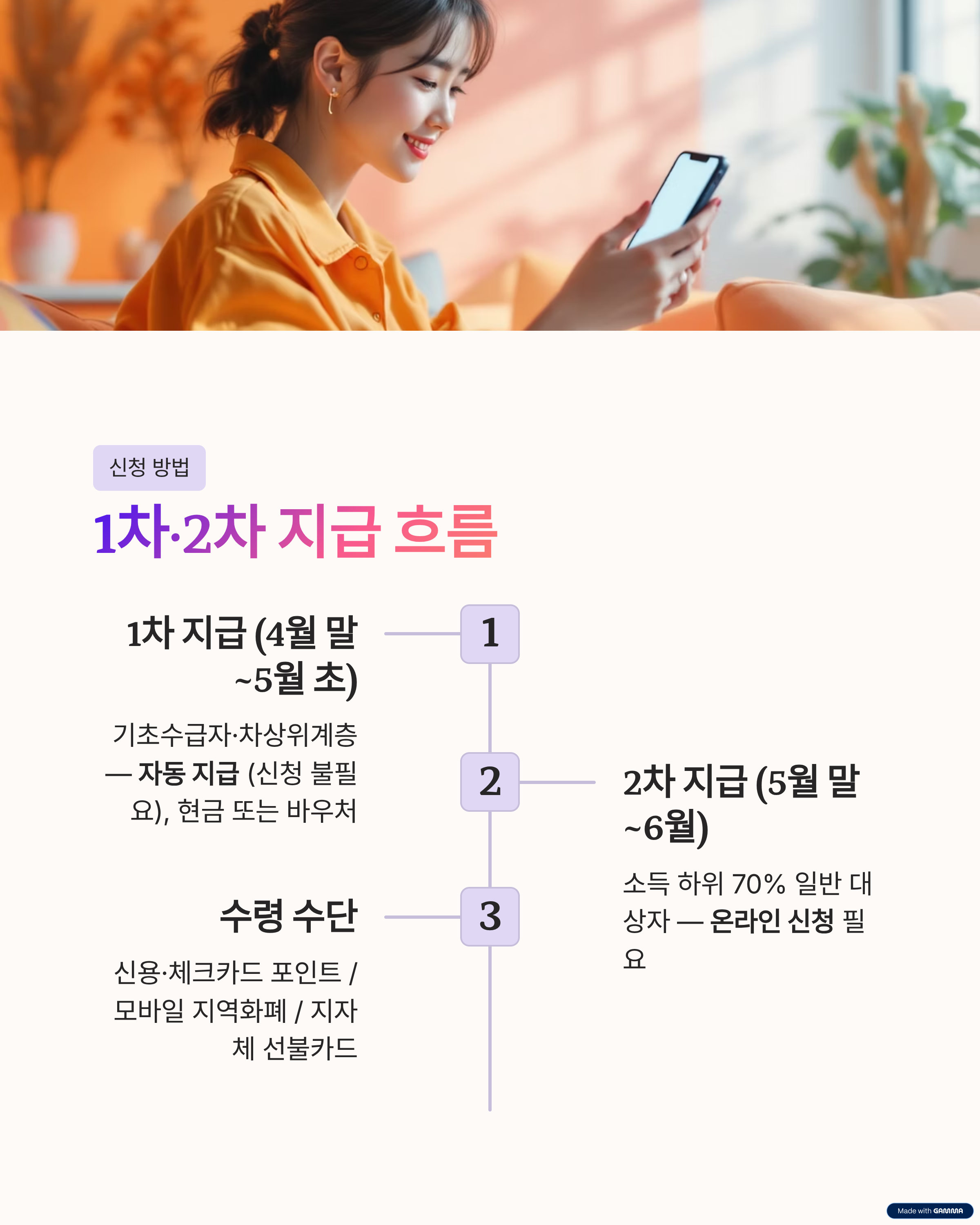 5. [신청] 1차·2차 지급 흐름과 수령 방법 (카드·지역화폐)