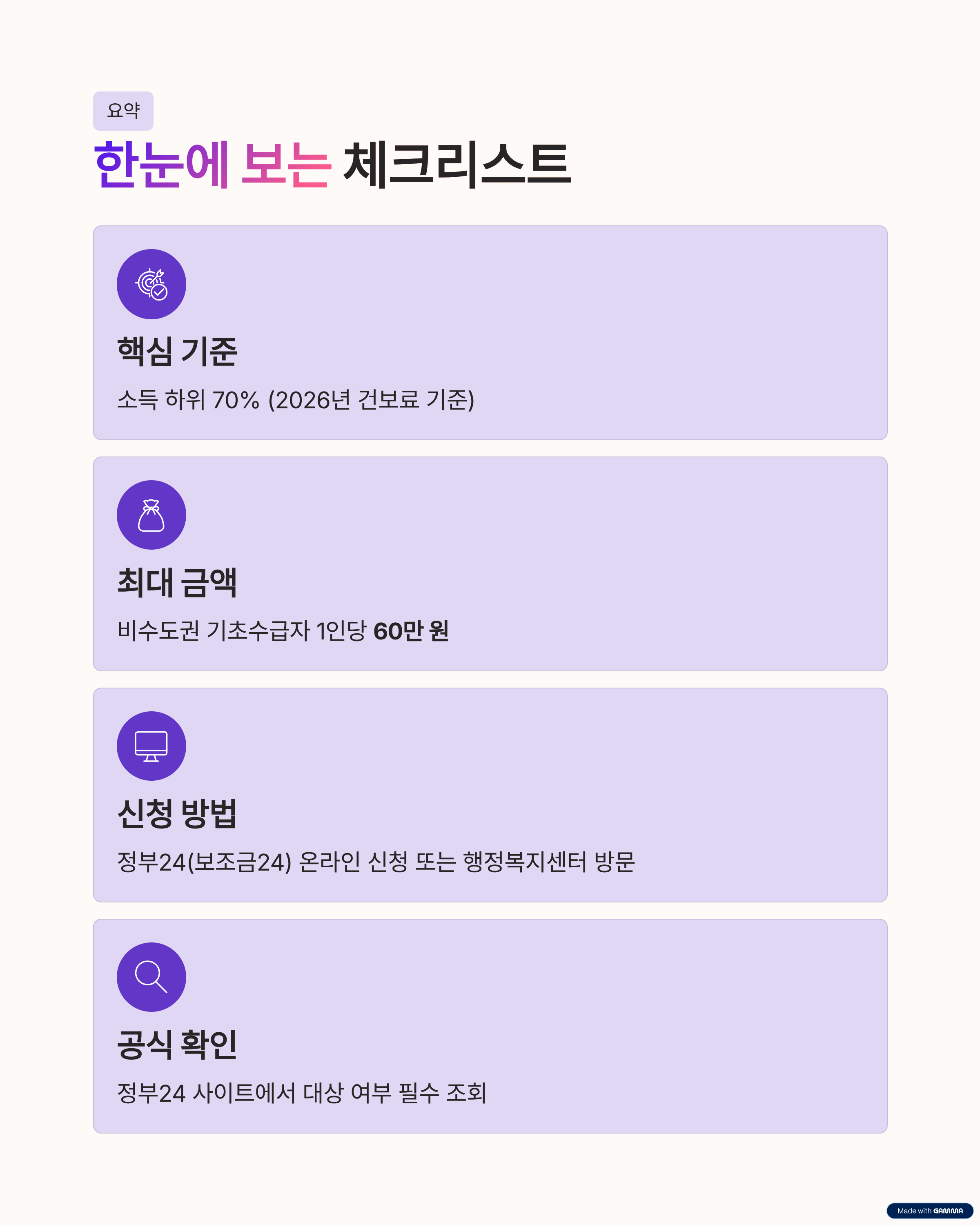 공식 확인 [정부24 바로가기] 사이트에서 대상 여부 필수 조회