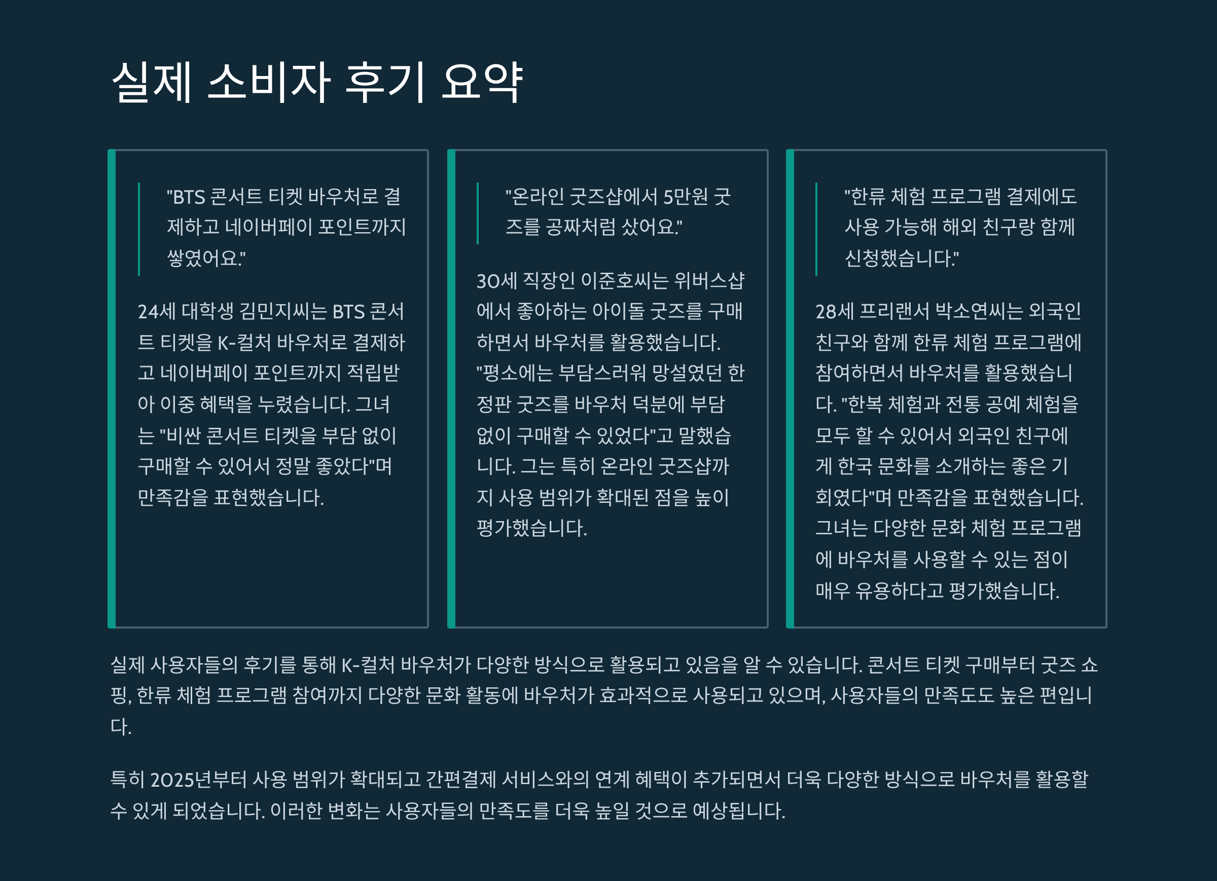 - “BTS 콘서트 티켓 바우처로 결제하고 네이버페이 포인트까지 쌓였어요.” – 24세 대학생