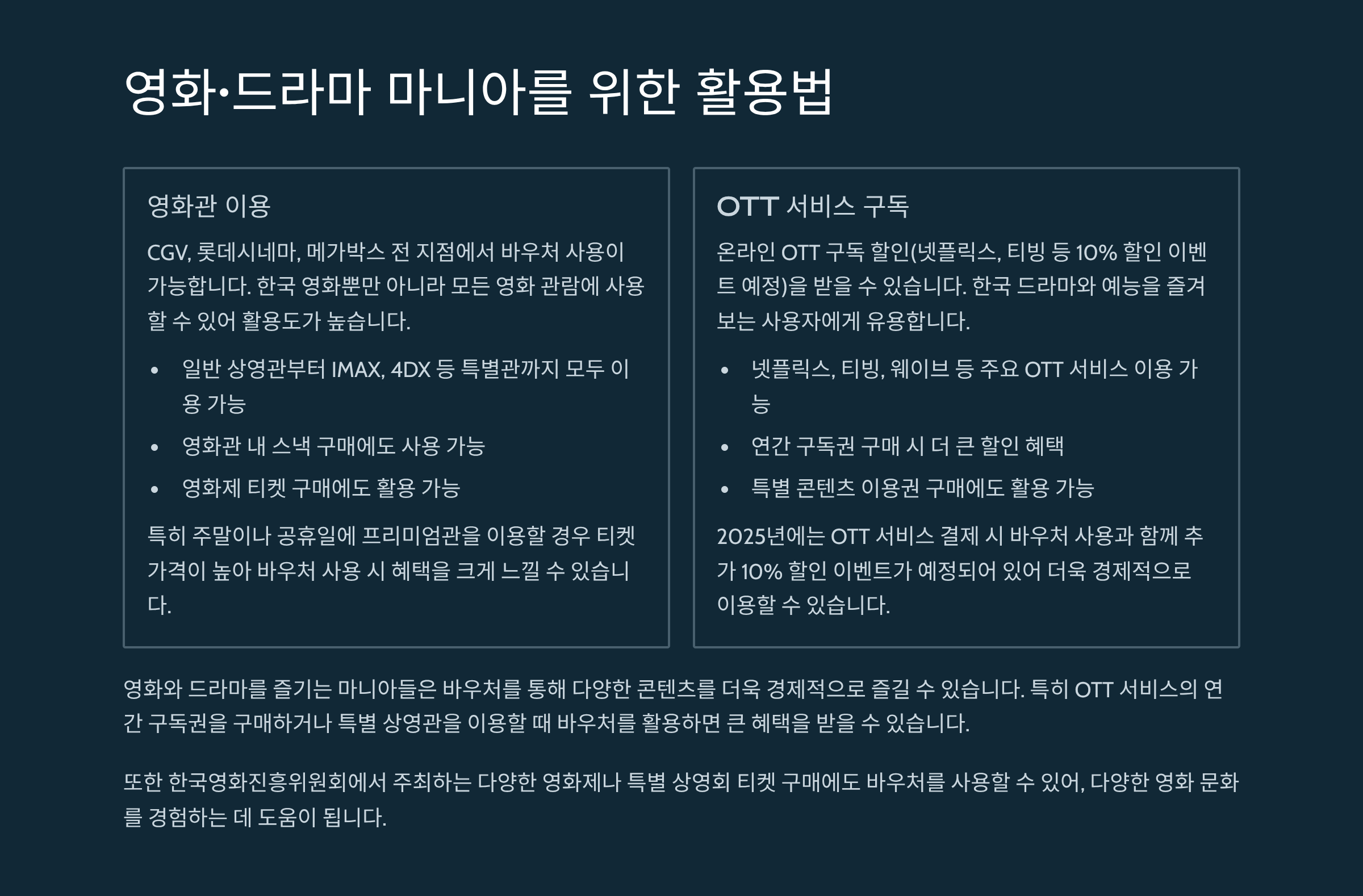- CGV, 롯데시네마, 메가박스 전 지점 사용 가능
