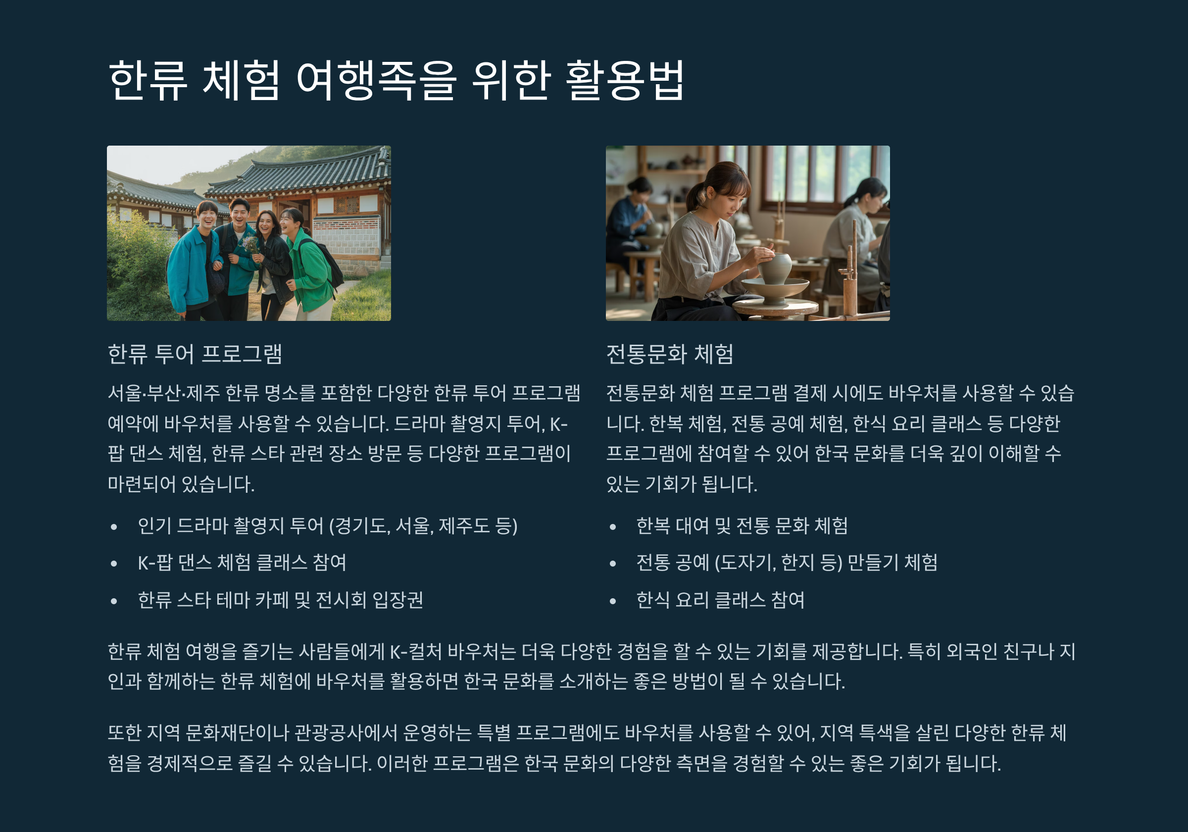• 사용처: K-팝 콘서트, 공연, 영화관, 온라인 굿즈샵, 한류 체험 프로그램 등